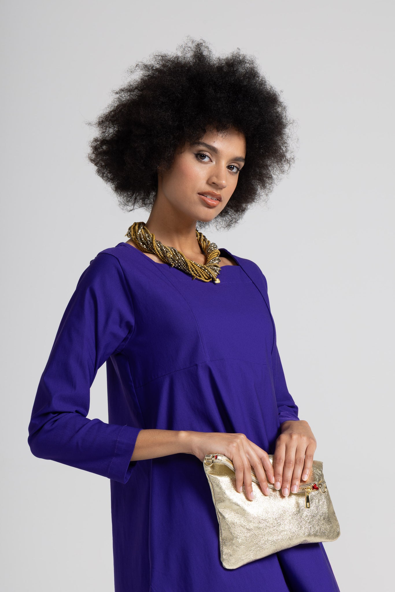 Abito midi dallo stile sobrio ma deciso, pensato per offrire comfort e libertà di movimento senza rinunciare all’eleganza minimale, ideale sia per un look quotidiano curato che per occasioni più formali.