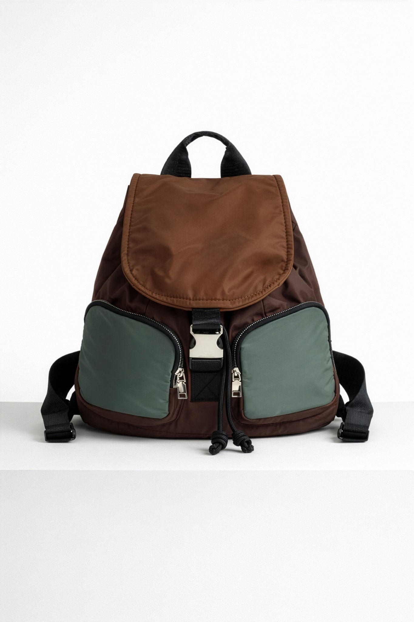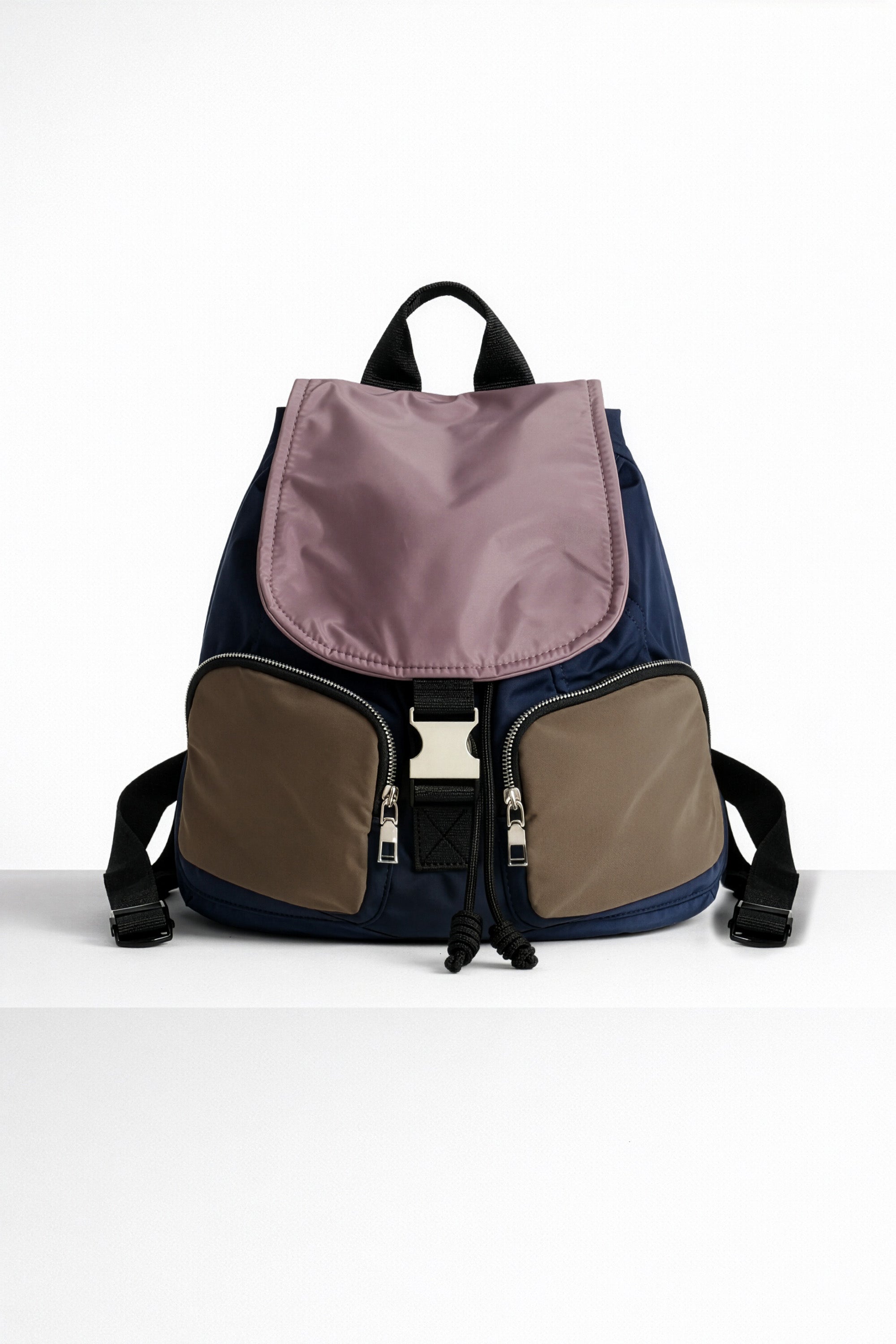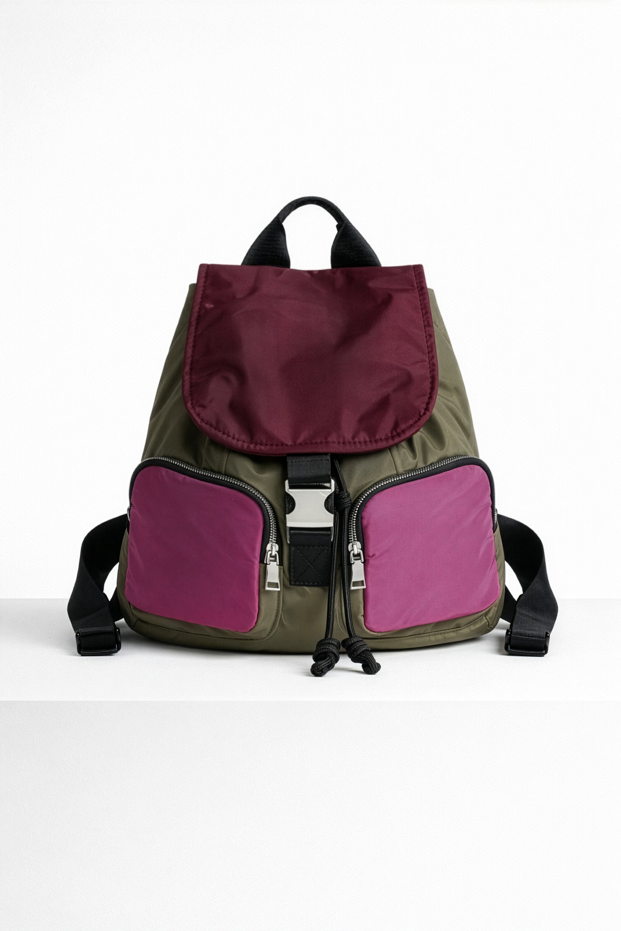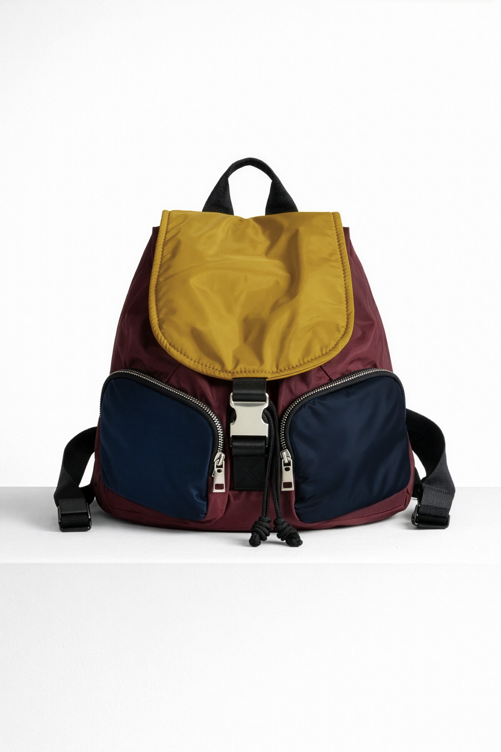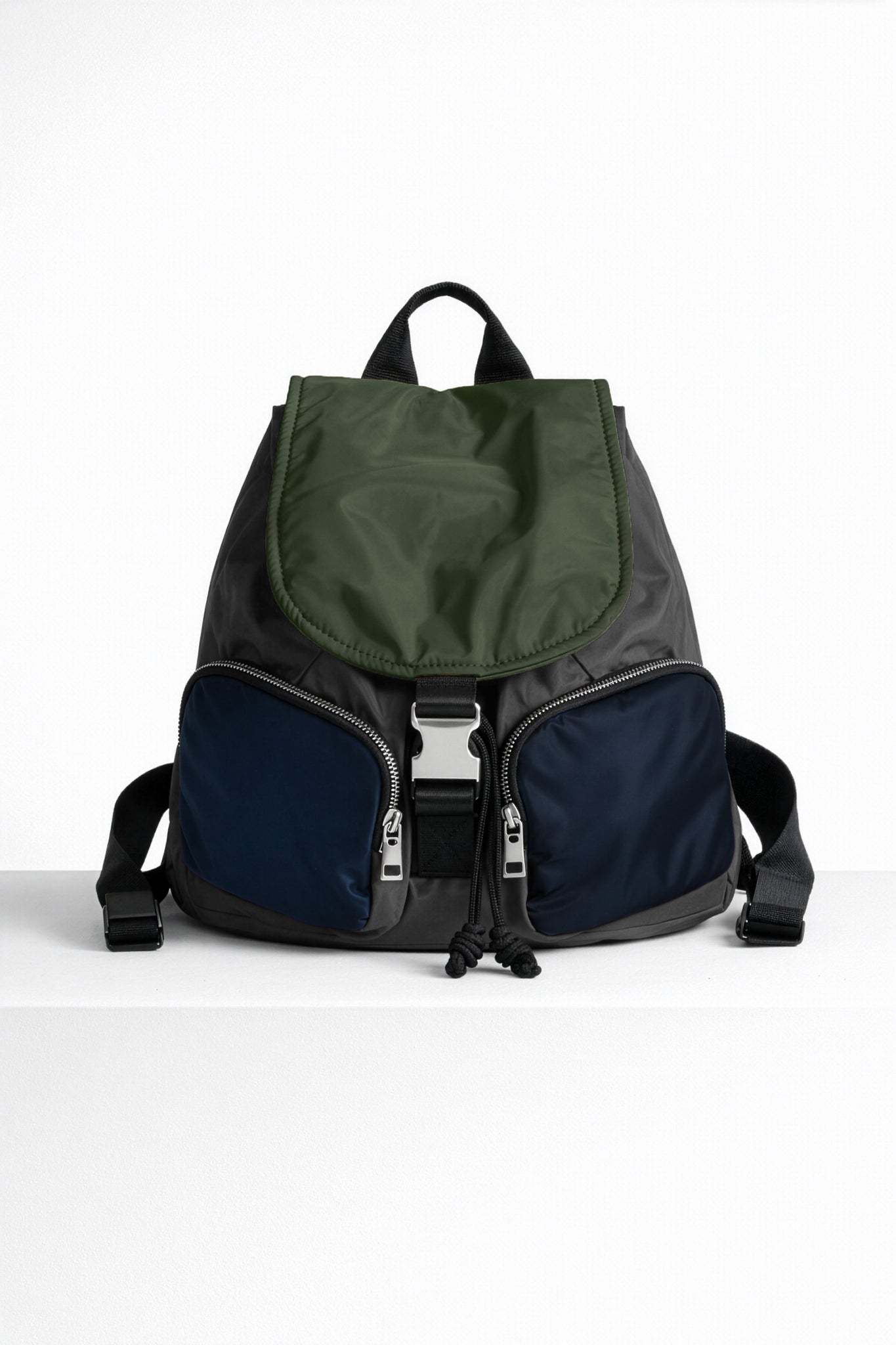Zaino in nylon dal design urbano e super funzionale, la struttura è morbida ma resistente, con finitura leggermente satinata che dona un look moderno e curato. Il mix di colori a contrasto lo rende originale senza essere eccessivo, facile da abbinare e sempre attuale.