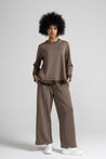 Pantalone ampio in tessuto fluido con vita elasticizzata e coulisse regolabile. Un capo dal design minimal e contemporaneo che unisce comfort e stile. La gamba larga e dritta crea un effetto morbido e raffinato, perfetto per look casual chic o per outfit da tempo libero.
