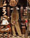 La linea ampia e scivolata dona armonia alla figura e accompagna i movimenti con grazia, mentre la vita elasticizzata assicura massimo comfort e una vestibilità versatile.