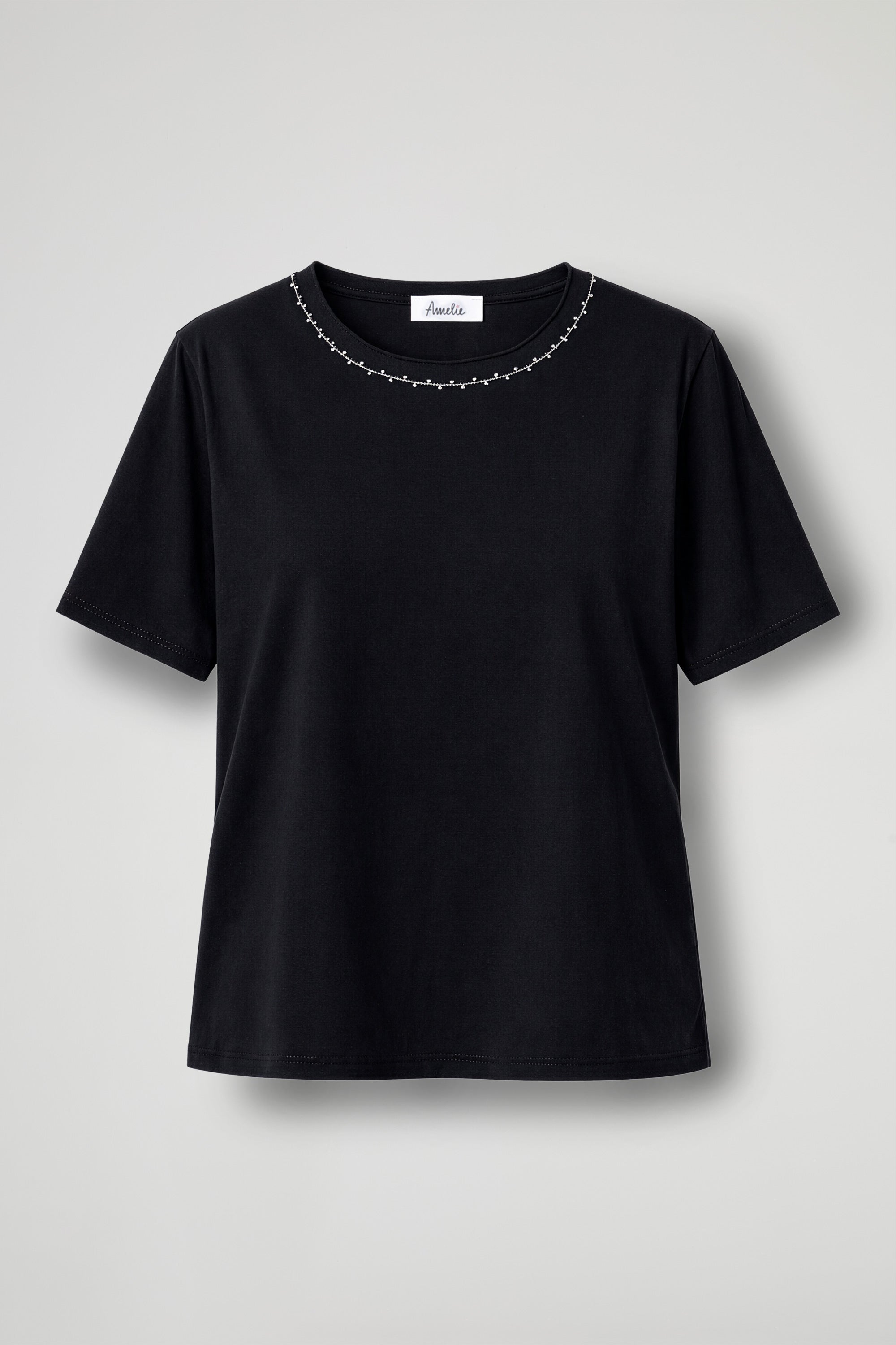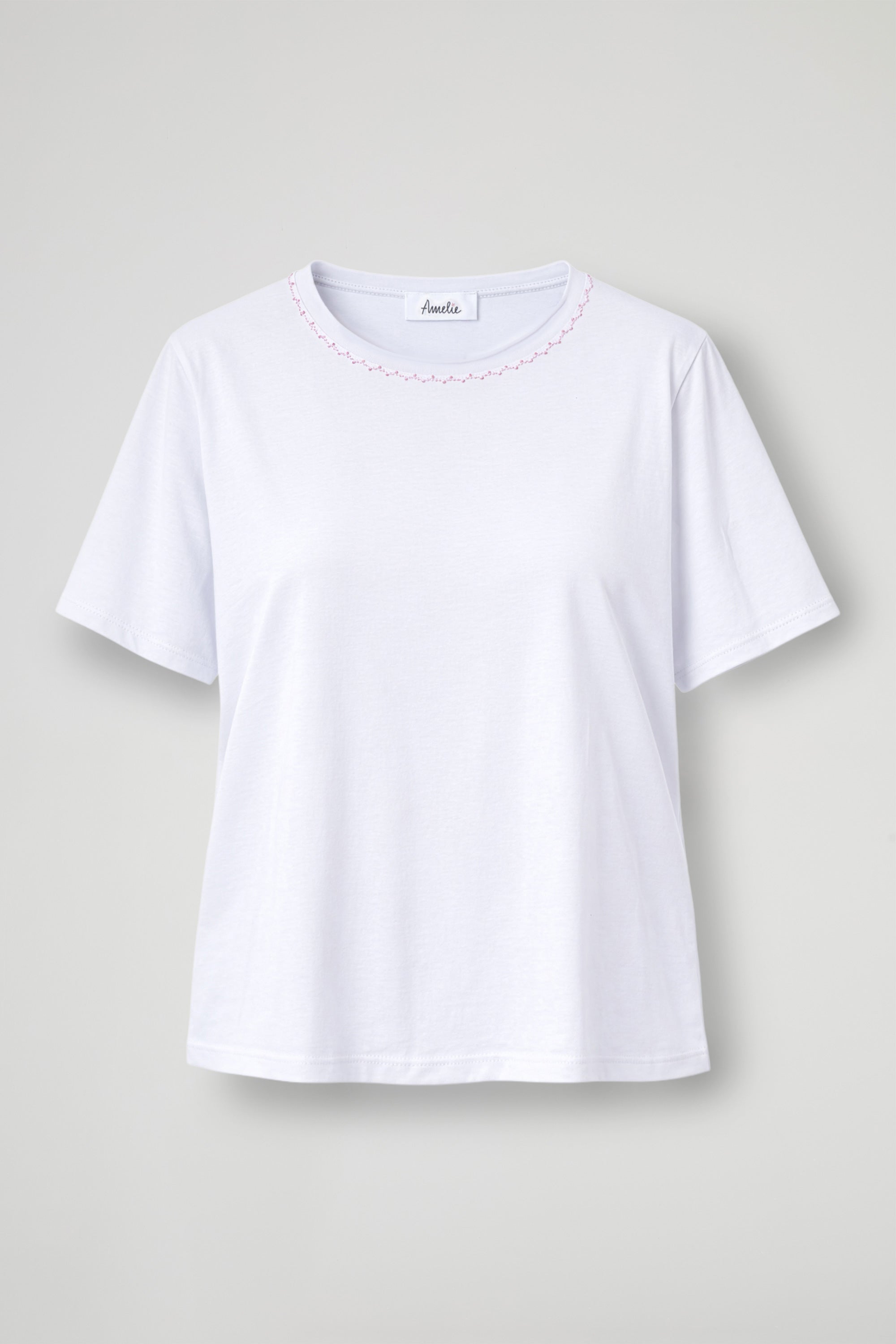 T-Shirt dal design essenziale, taglio morbido e il tessuto leggero garantiscono comfort e libertà di movimento; Il girocollo è arricchito da un raffinato dettaglio di cucitura decorativa a contrasto sullo scollo che dona un tocco originale e moderno a un capo basic, trasformandolo in un elemento versatile e stiloso del guardaroba.