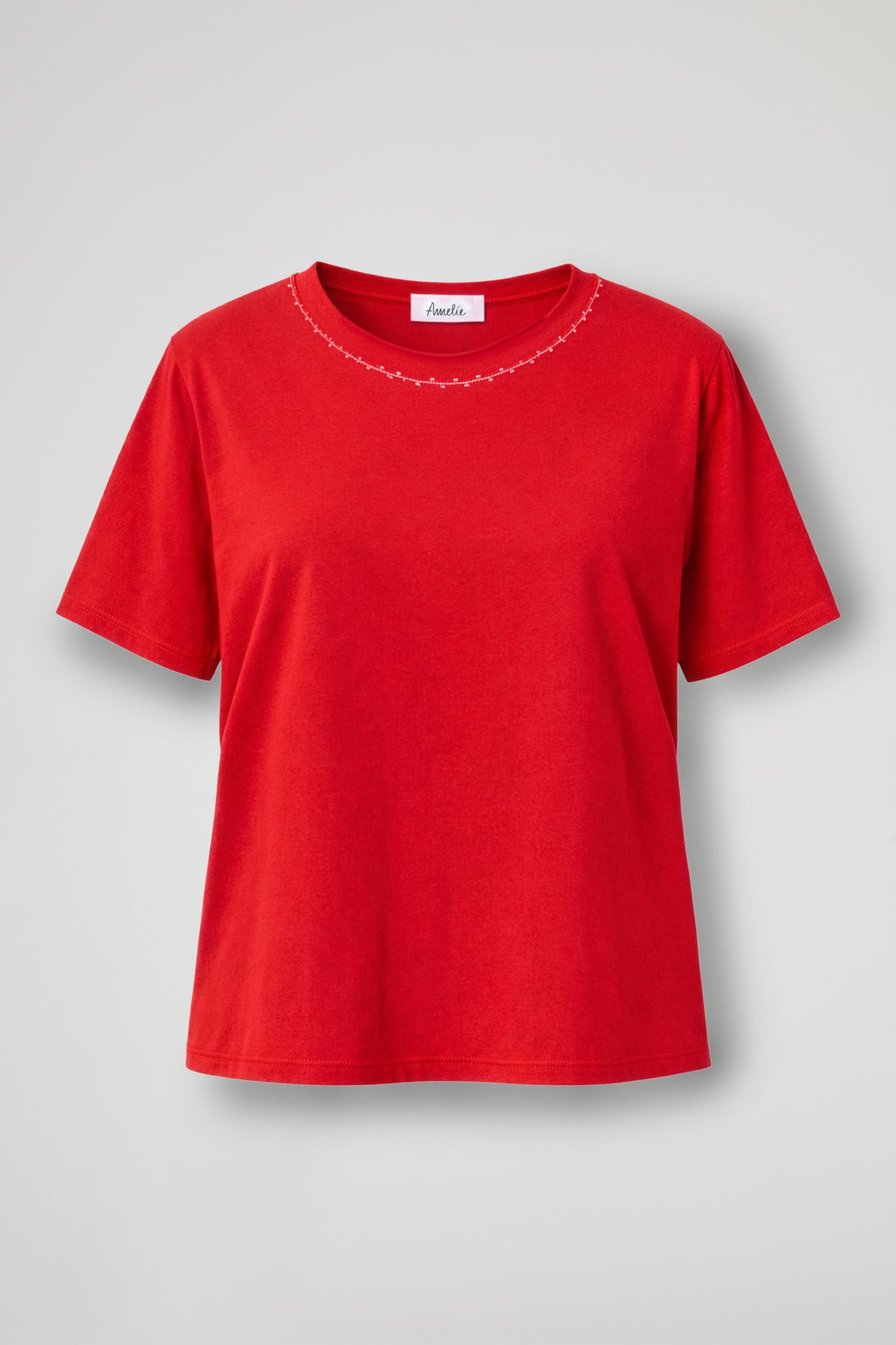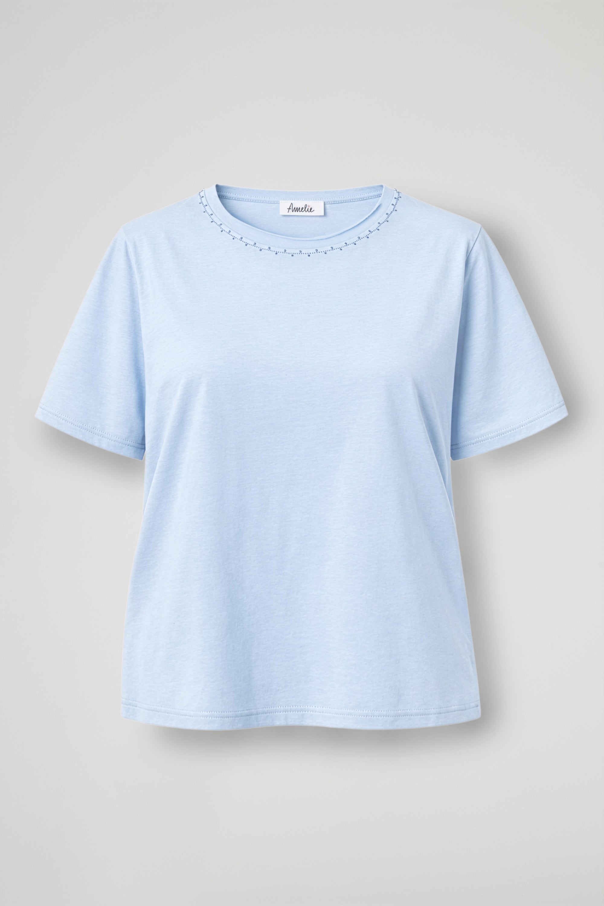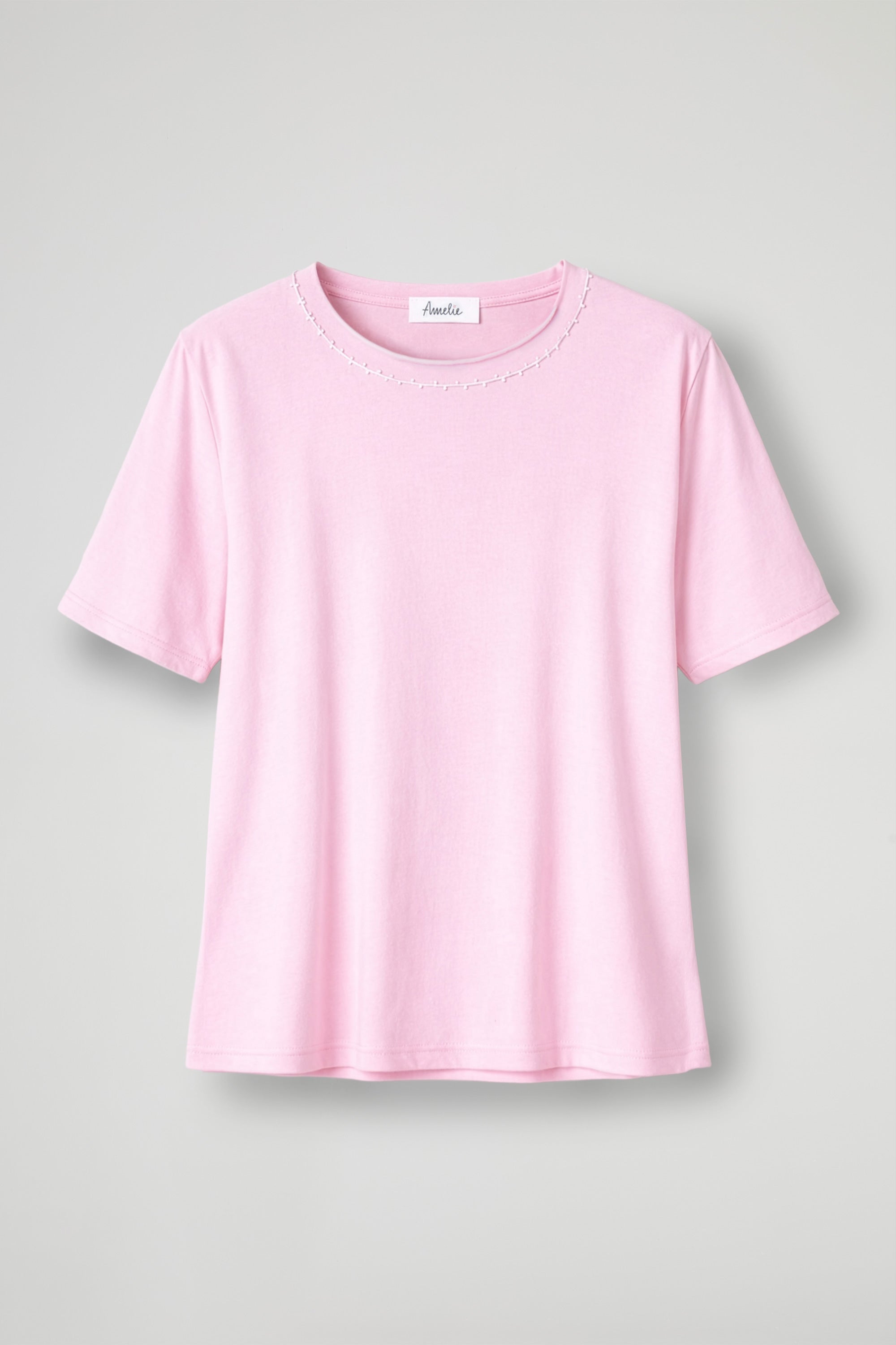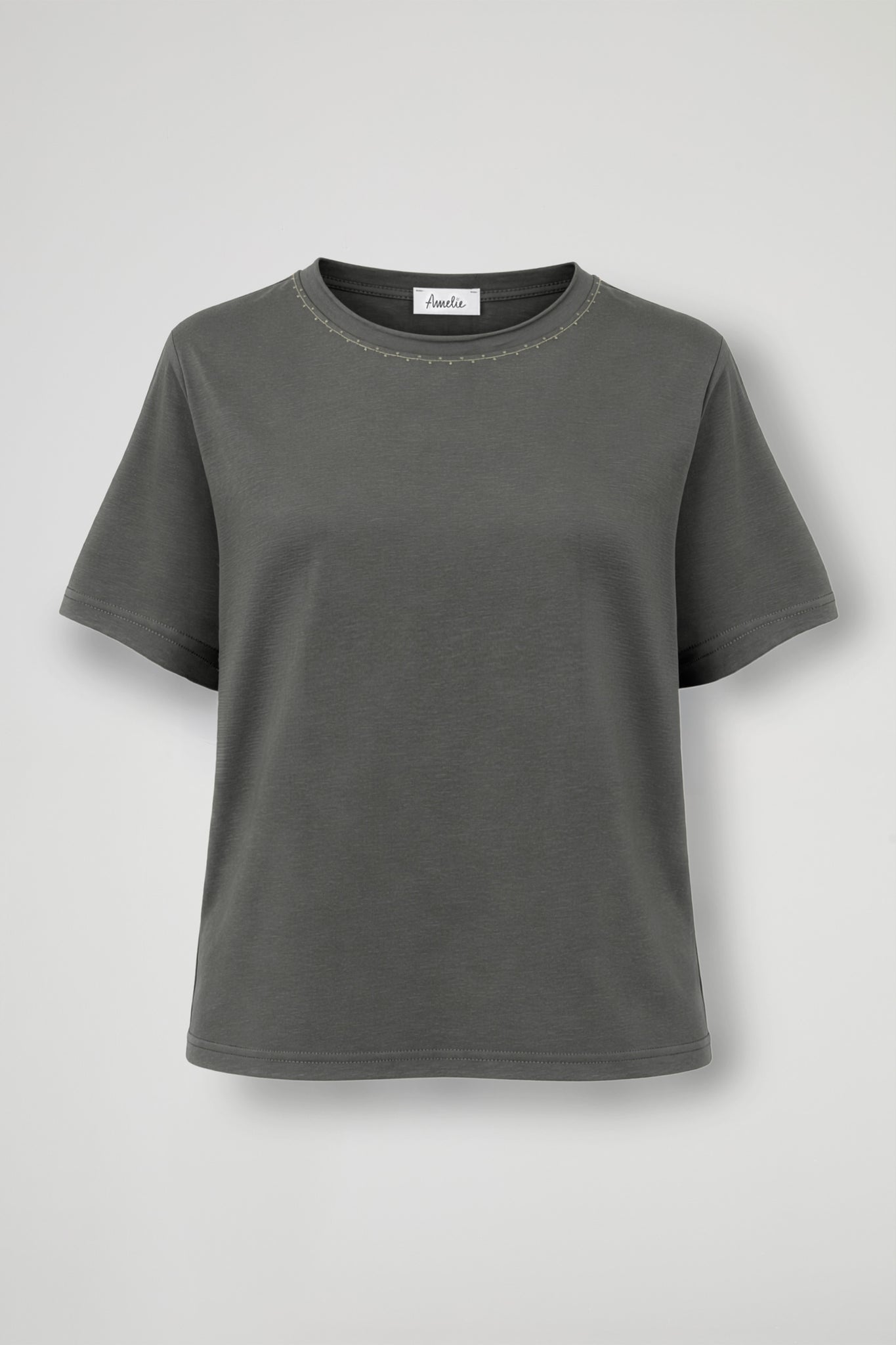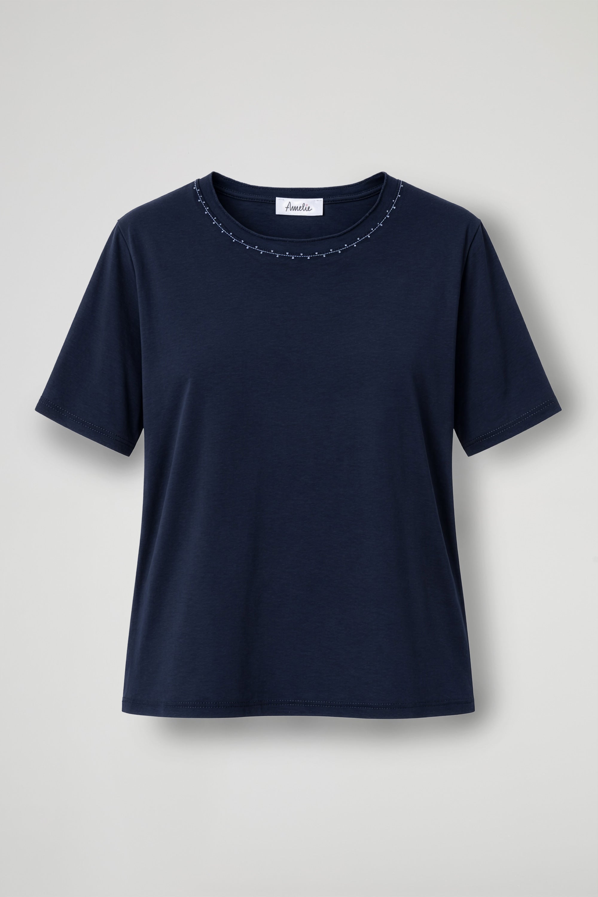 T-Shirt in morbido cotone, collo ampio con dettaglio cuciture decorative a contrasto, manica corta, orlo pulito sul fondo.