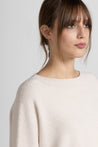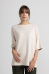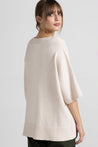 Viscose sweater with a relaxed fit and a loose fit. It features a round neckline finished with a ribbed trim, short, wide batwing sleeves, and a ribbed elasticated hem. A simple and versatile piece, perfect for completing casual or minimal chic looks, it can be worn alone or layered over shirts or tops.