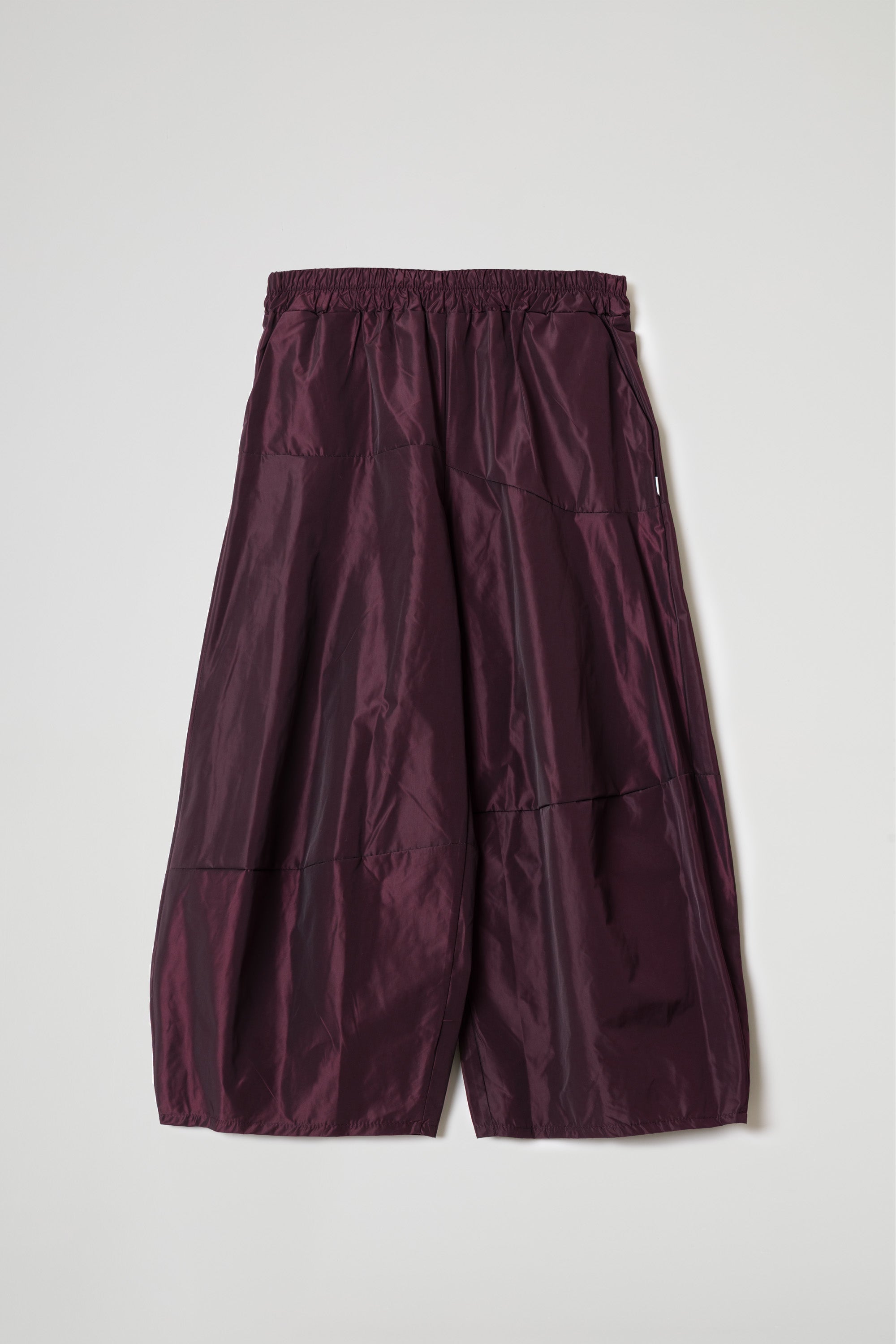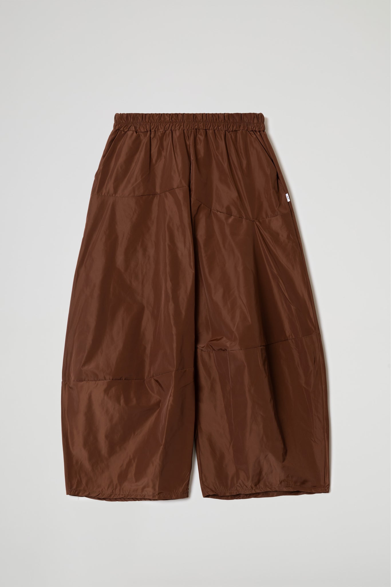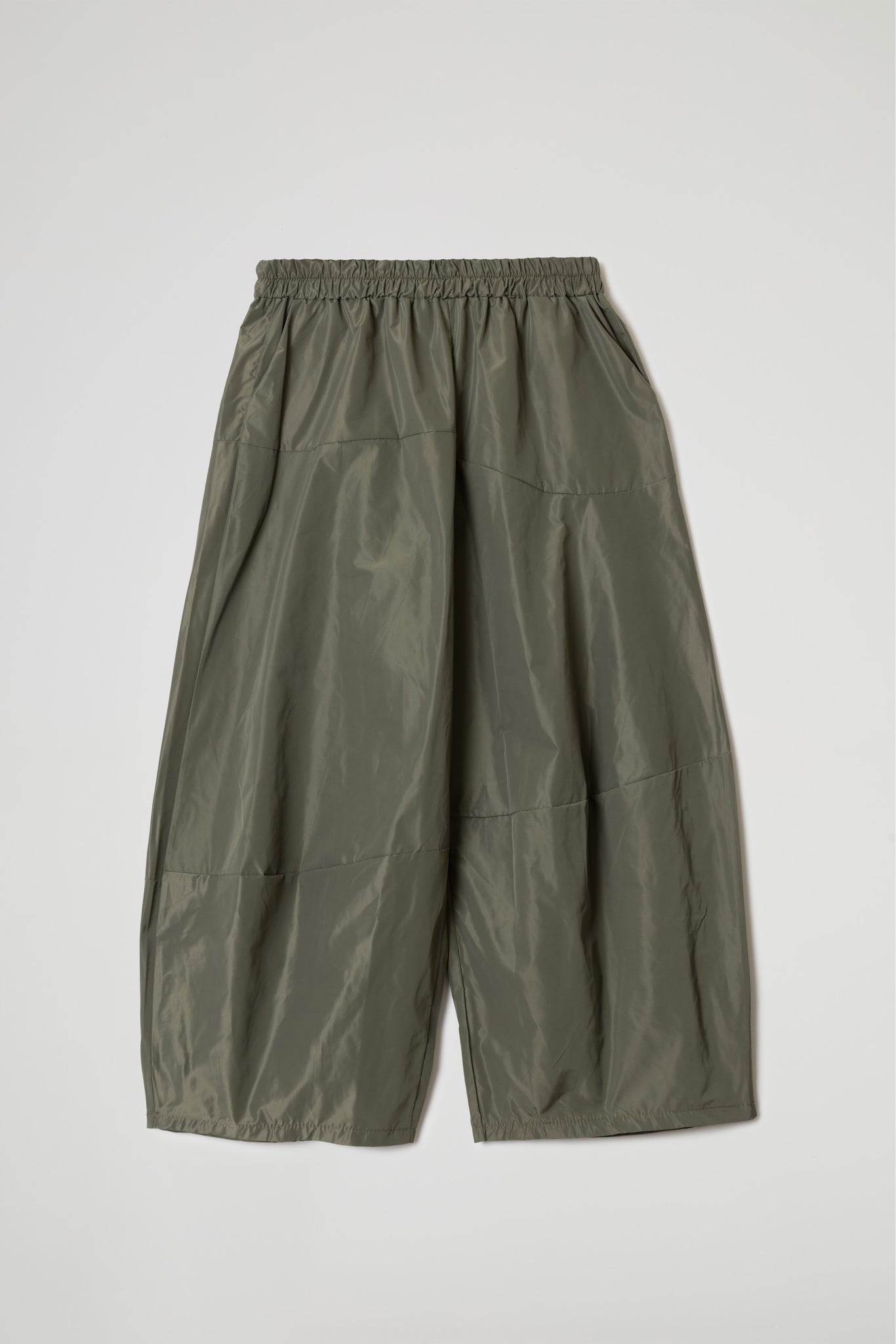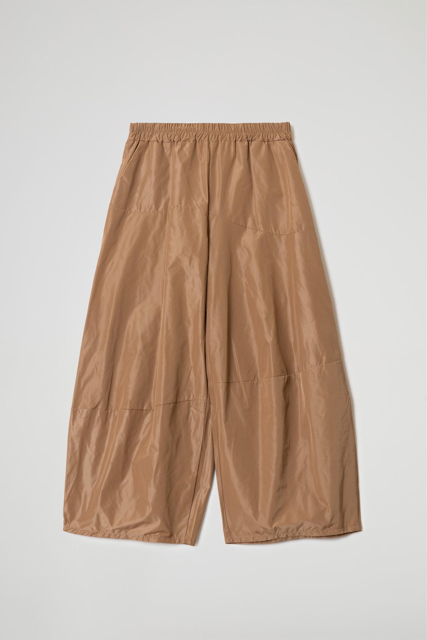 Baggy trousers in taffeta fabric with an elasticated waist, French pockets and asymmetrical stitching detail along the entire leg