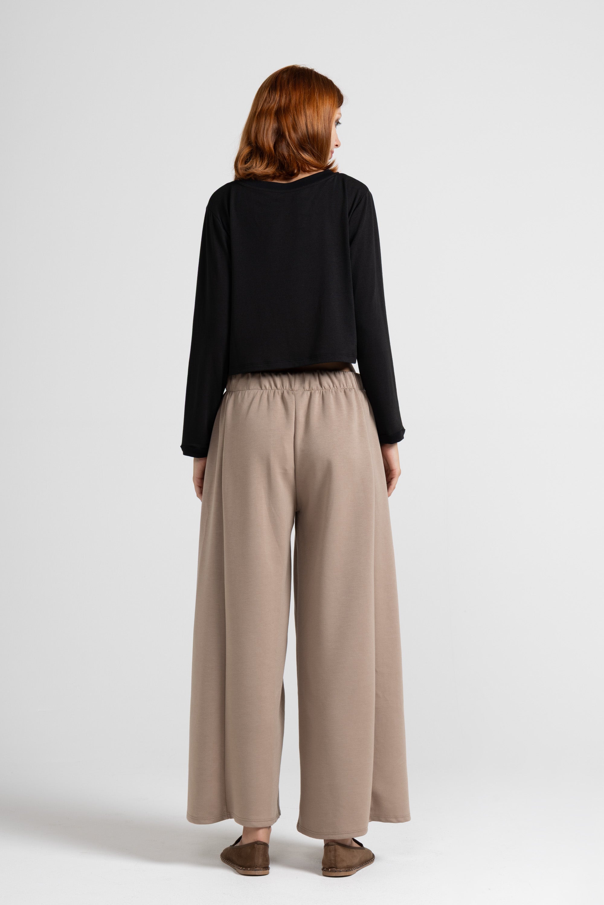 PALAZZO TROUSERS IN FLUENT VISCOSE FABRIC, CUT DETAIL ON THE HIP, ELASTIC WAIST.