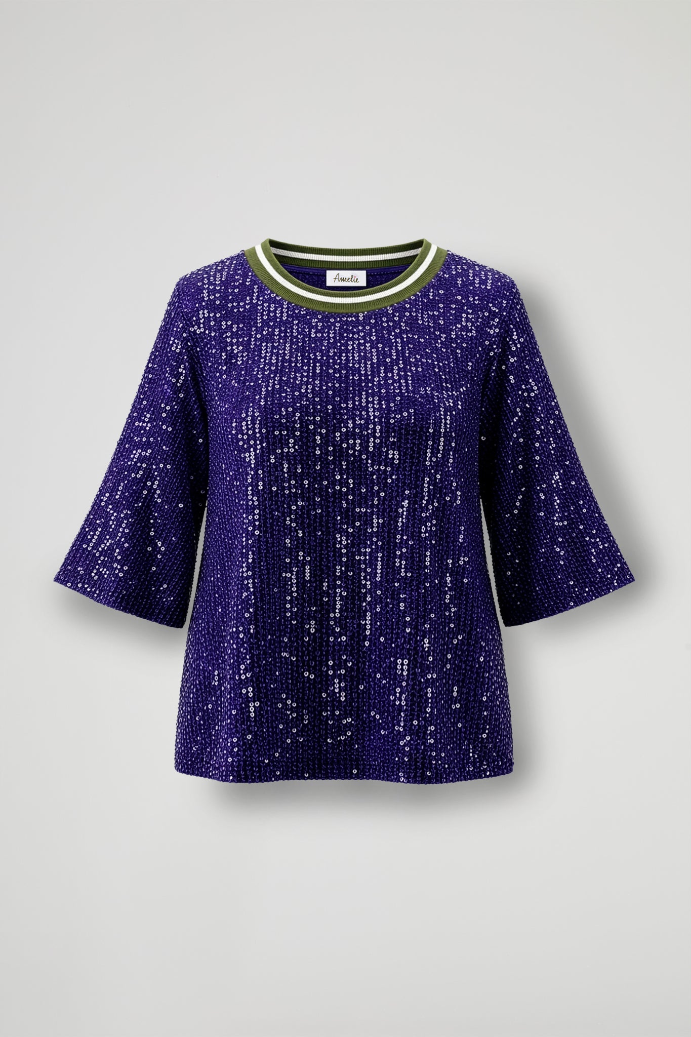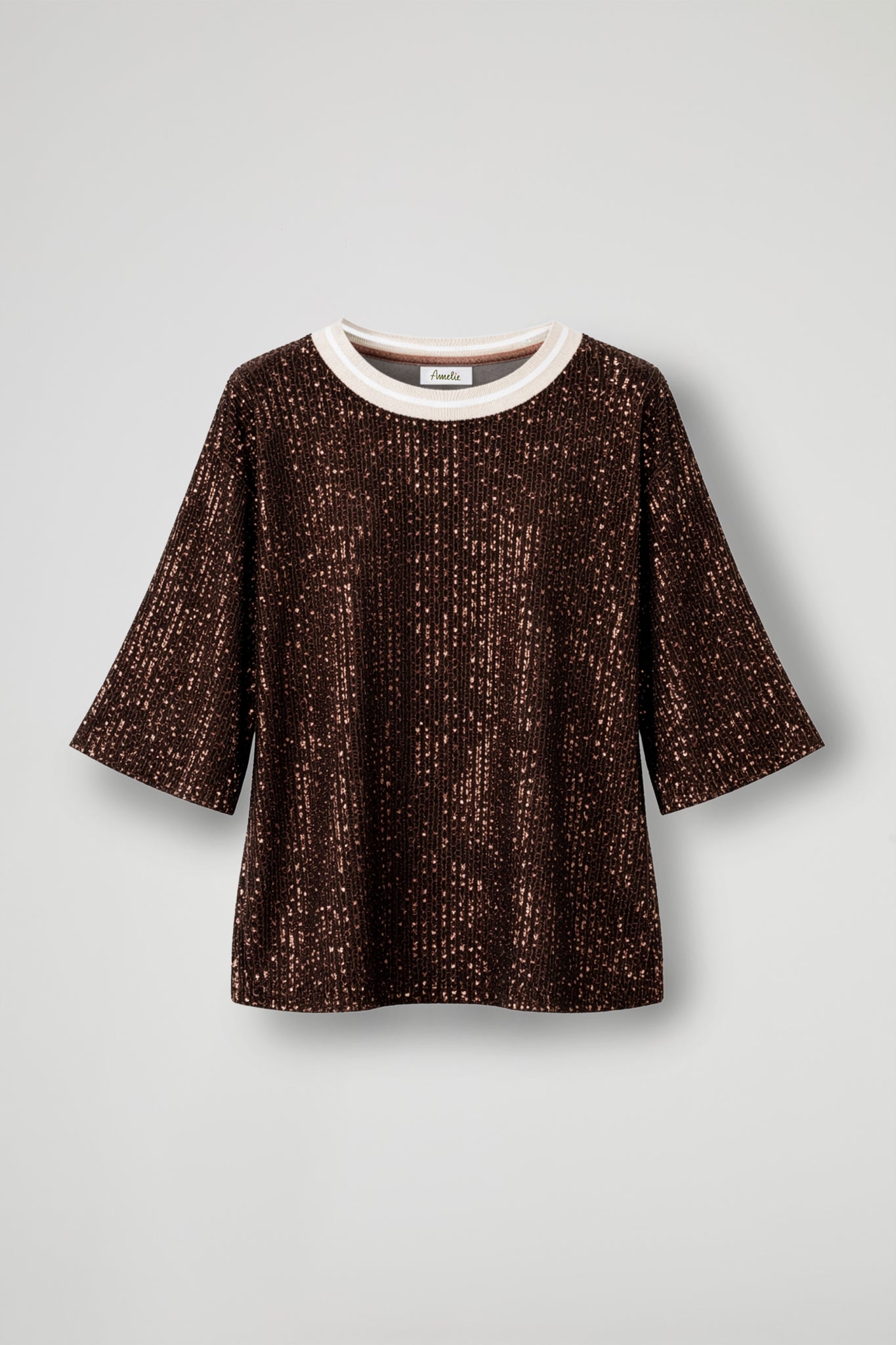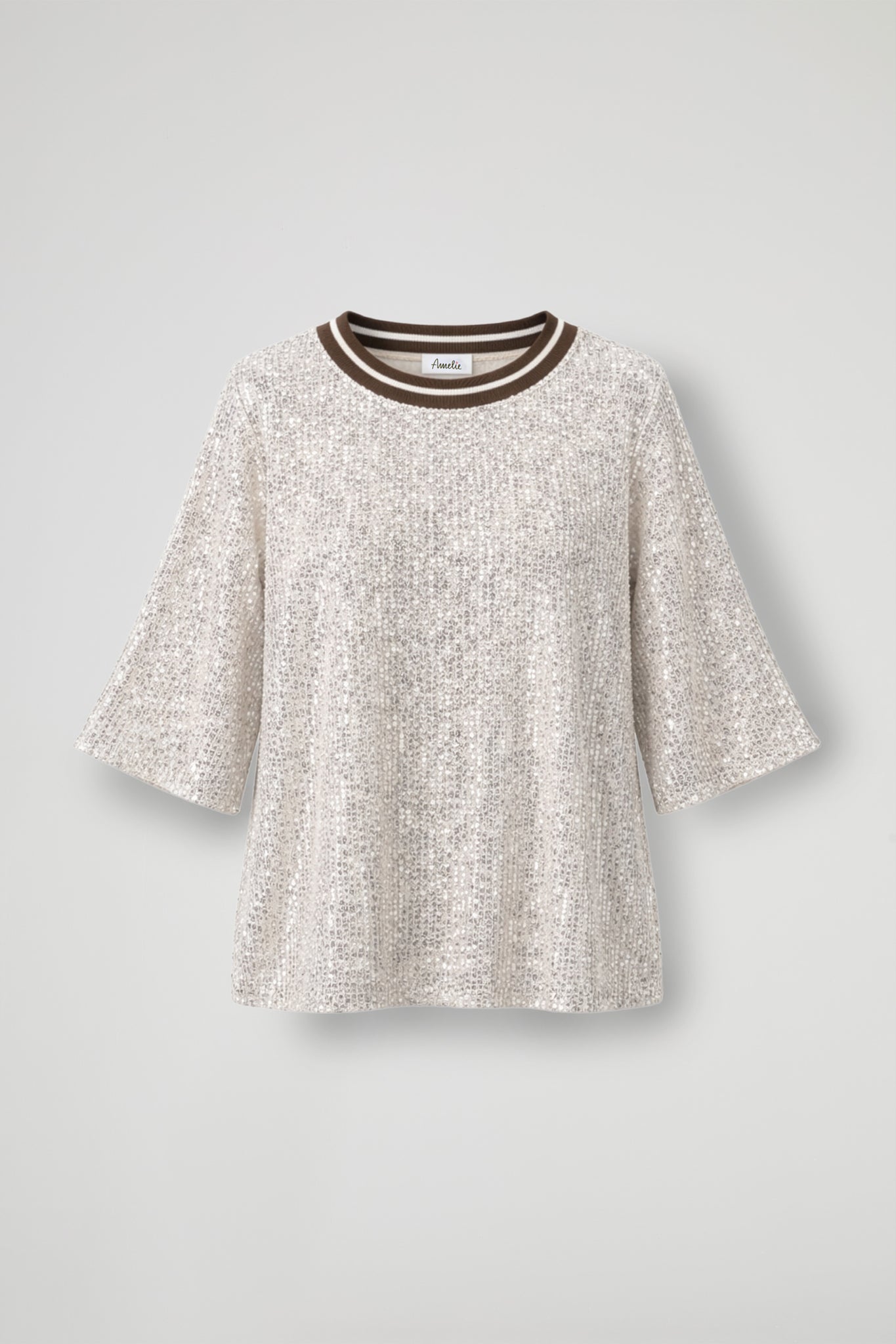 SEQUIN T-SHIRT WITH CONTRAST COLLAR