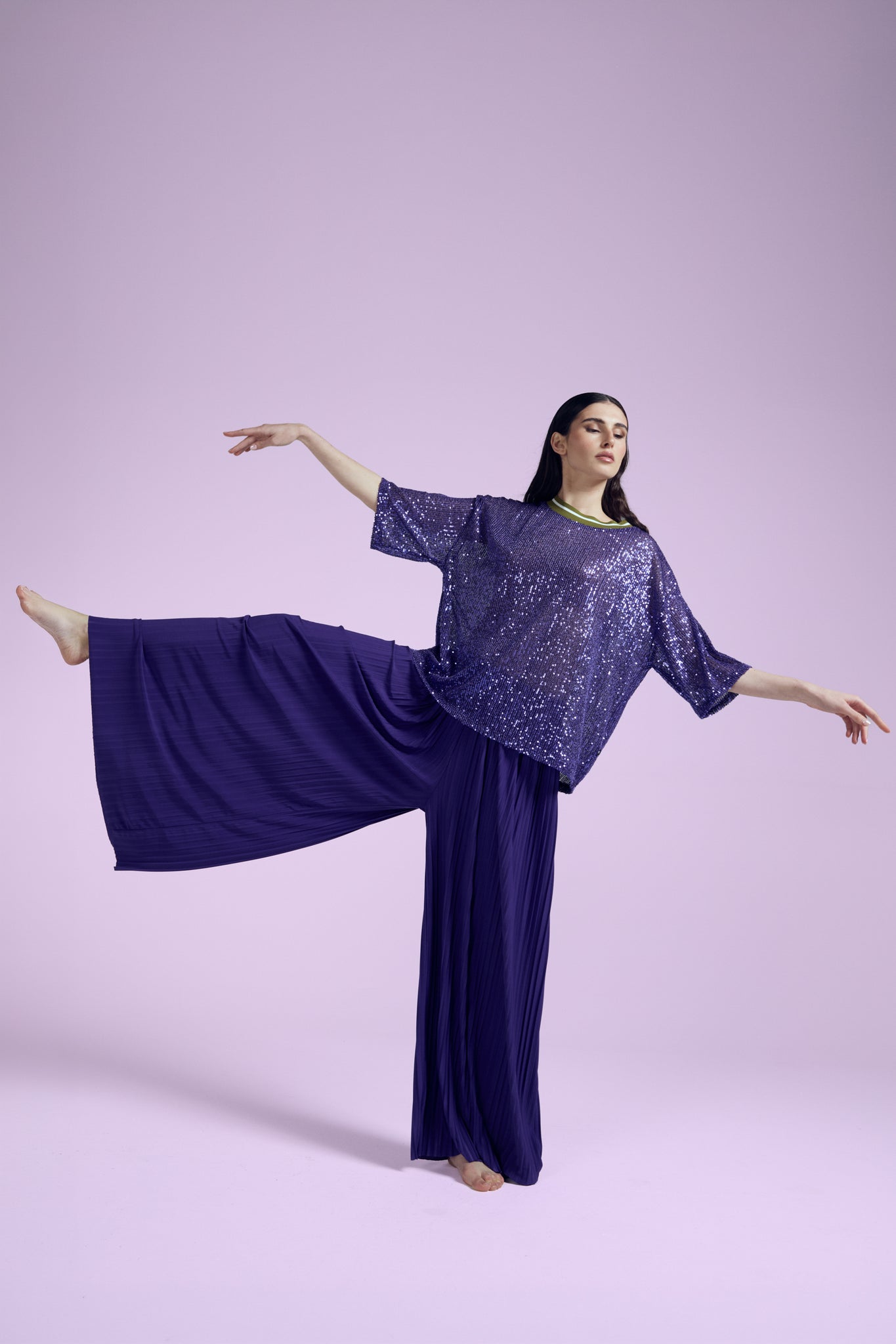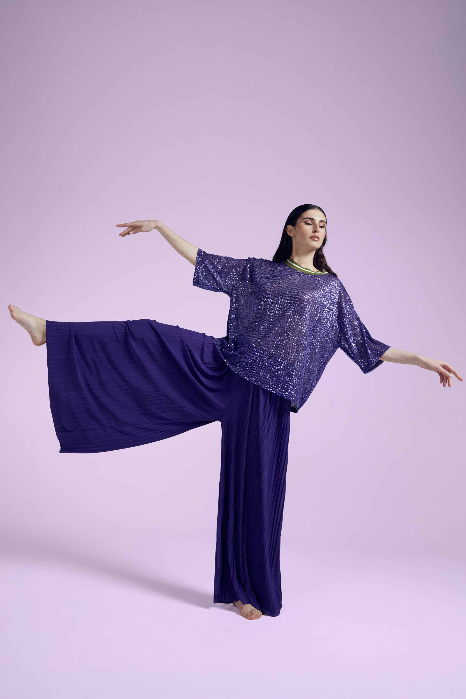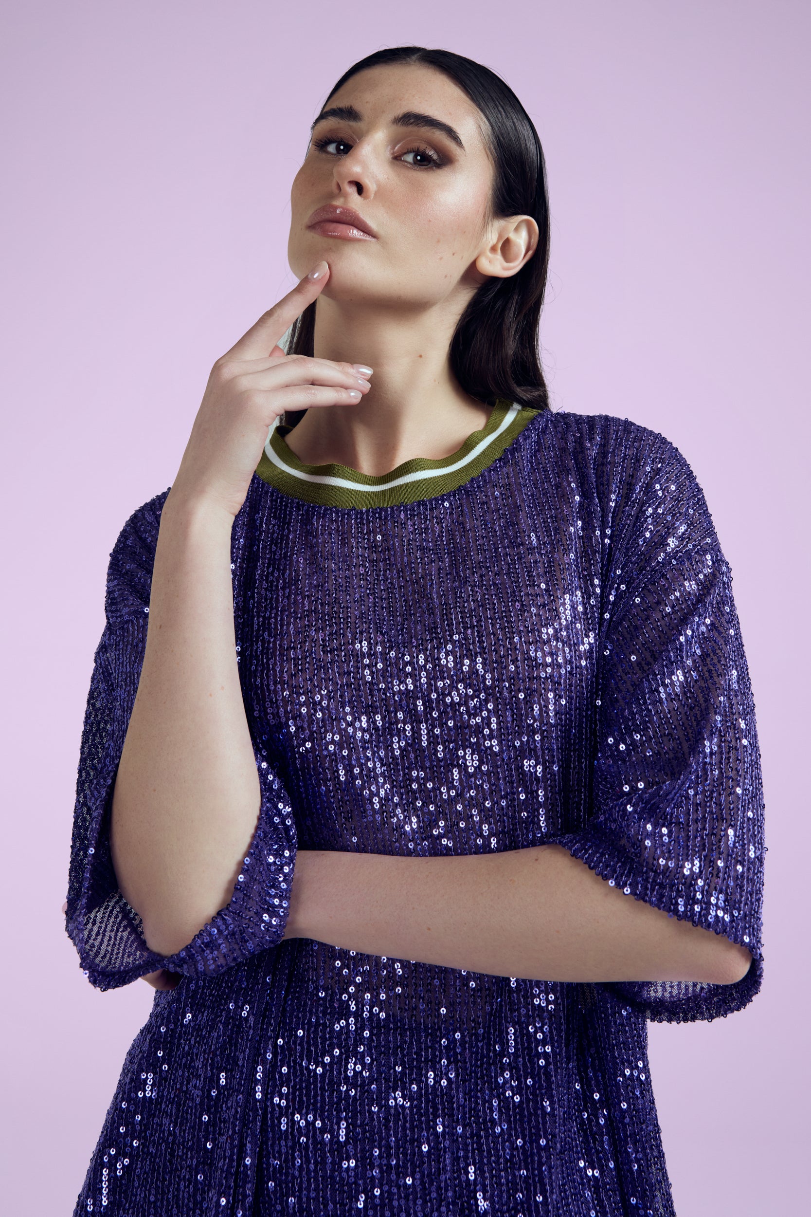 SEQUIN T-SHIRT WITH CONTRAST COLLAR