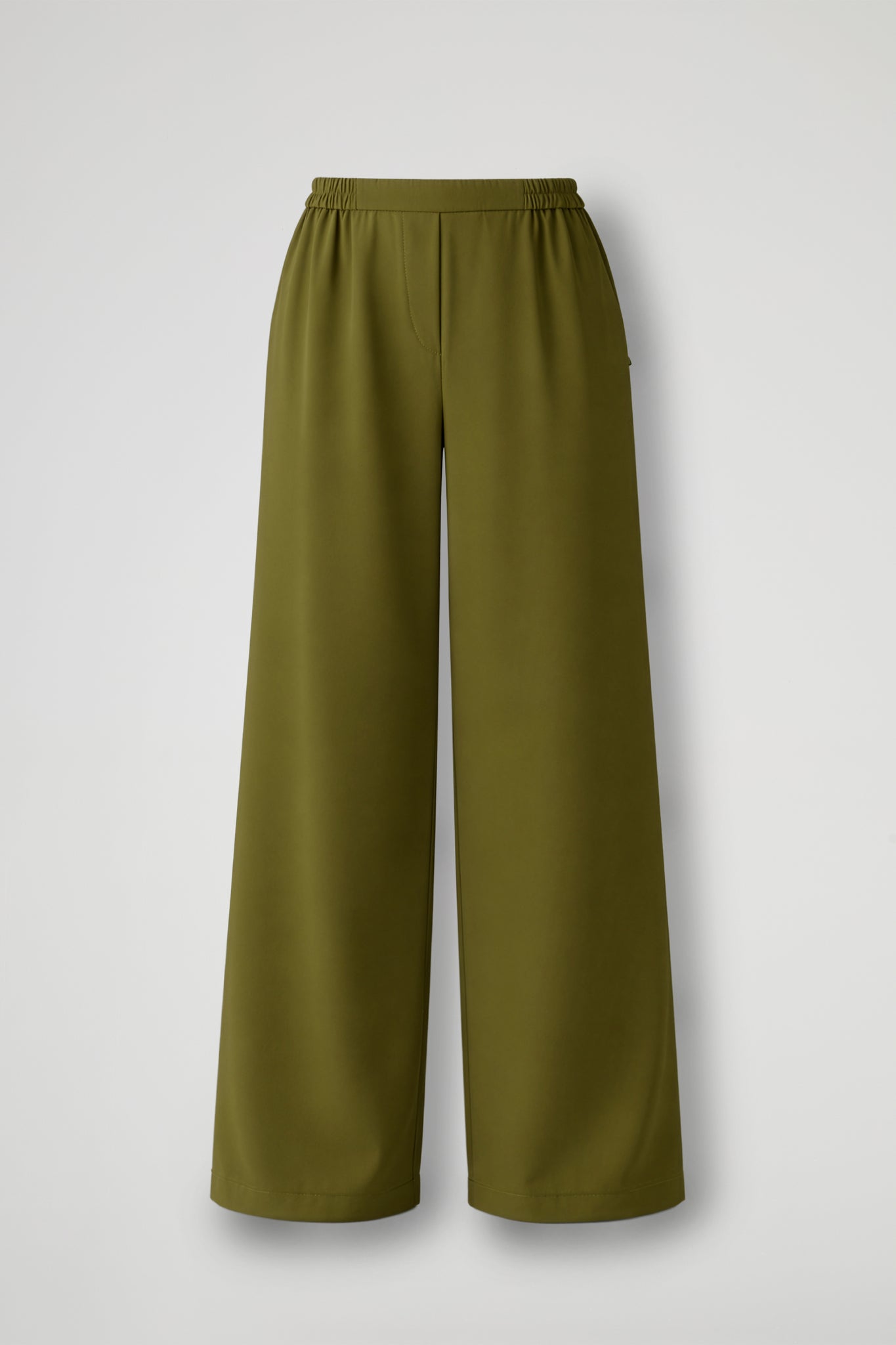 Palazzo trousers in flowing fabric, elasticated waist, slant pockets. Wide fit.
