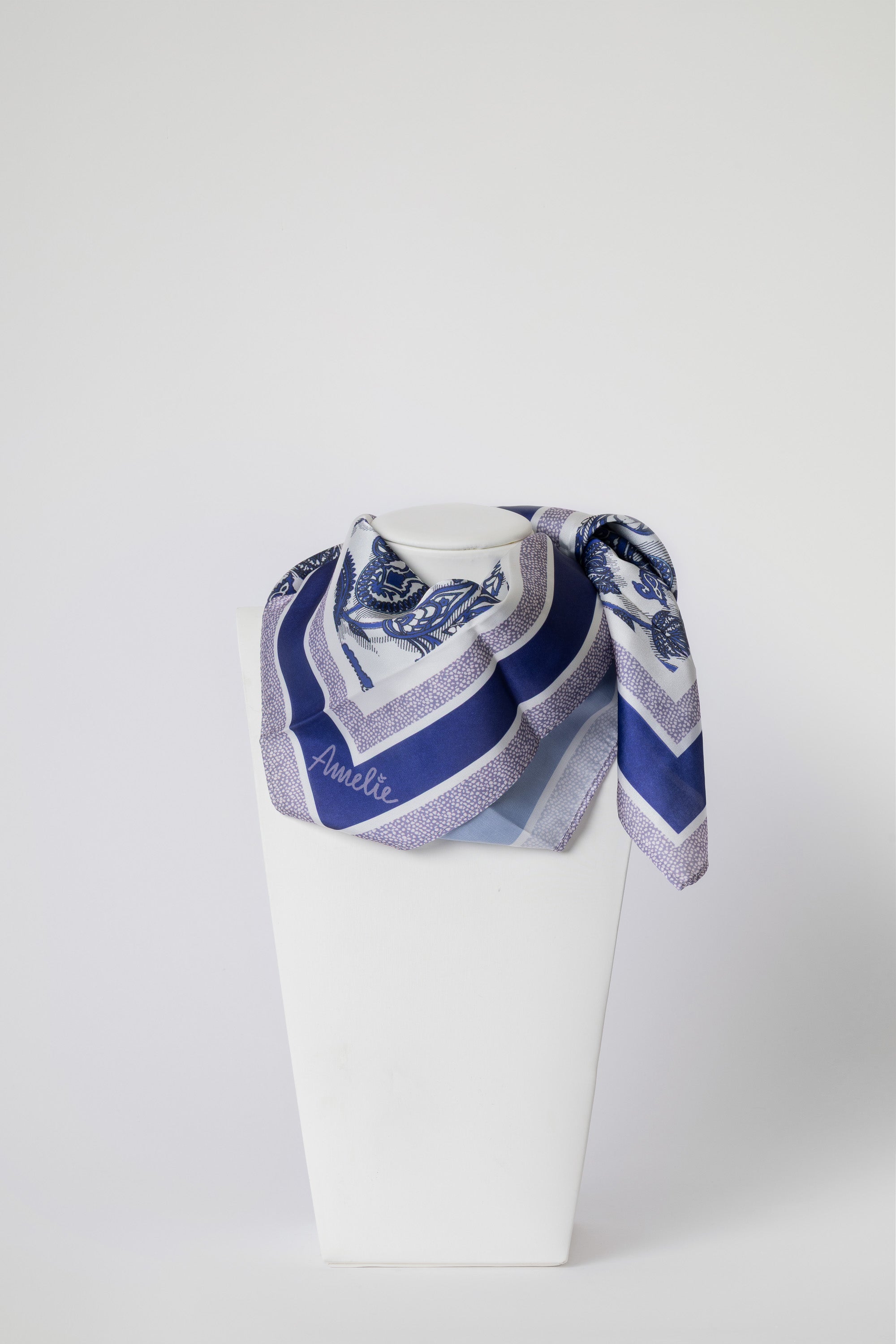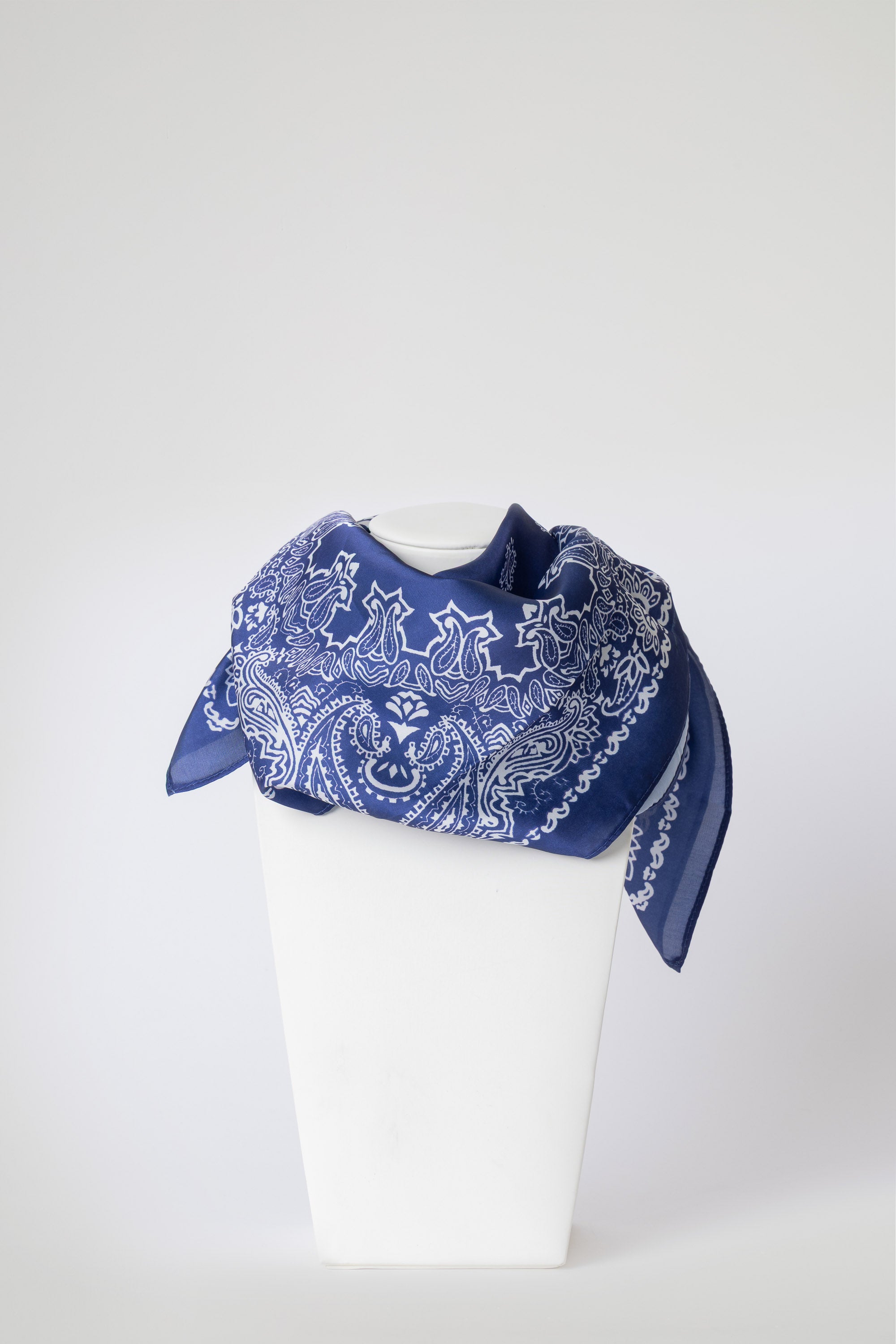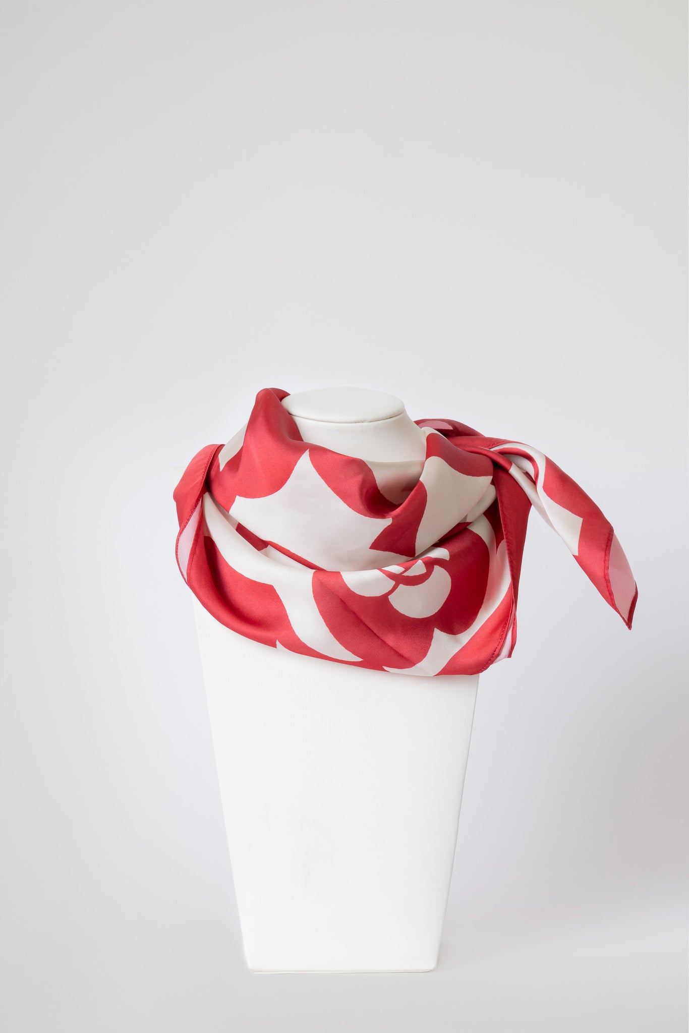 Foulard in morbida seta, impreziosito da raffinate stampe. Leggero, luminoso e piacevole al tatto, dona un tocco di eleganza e colore ad ogni look.