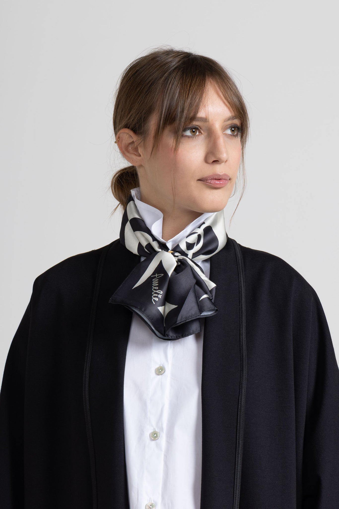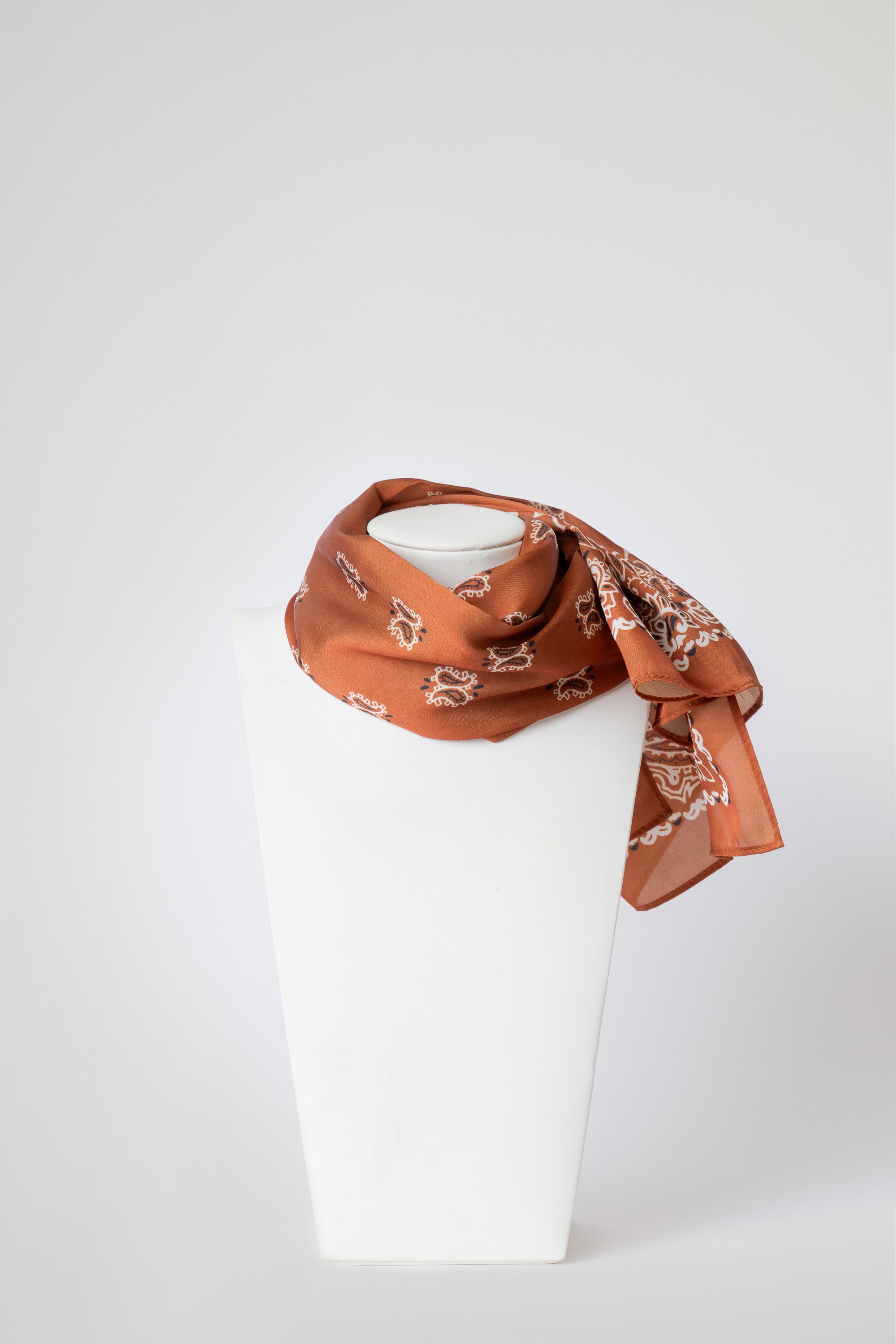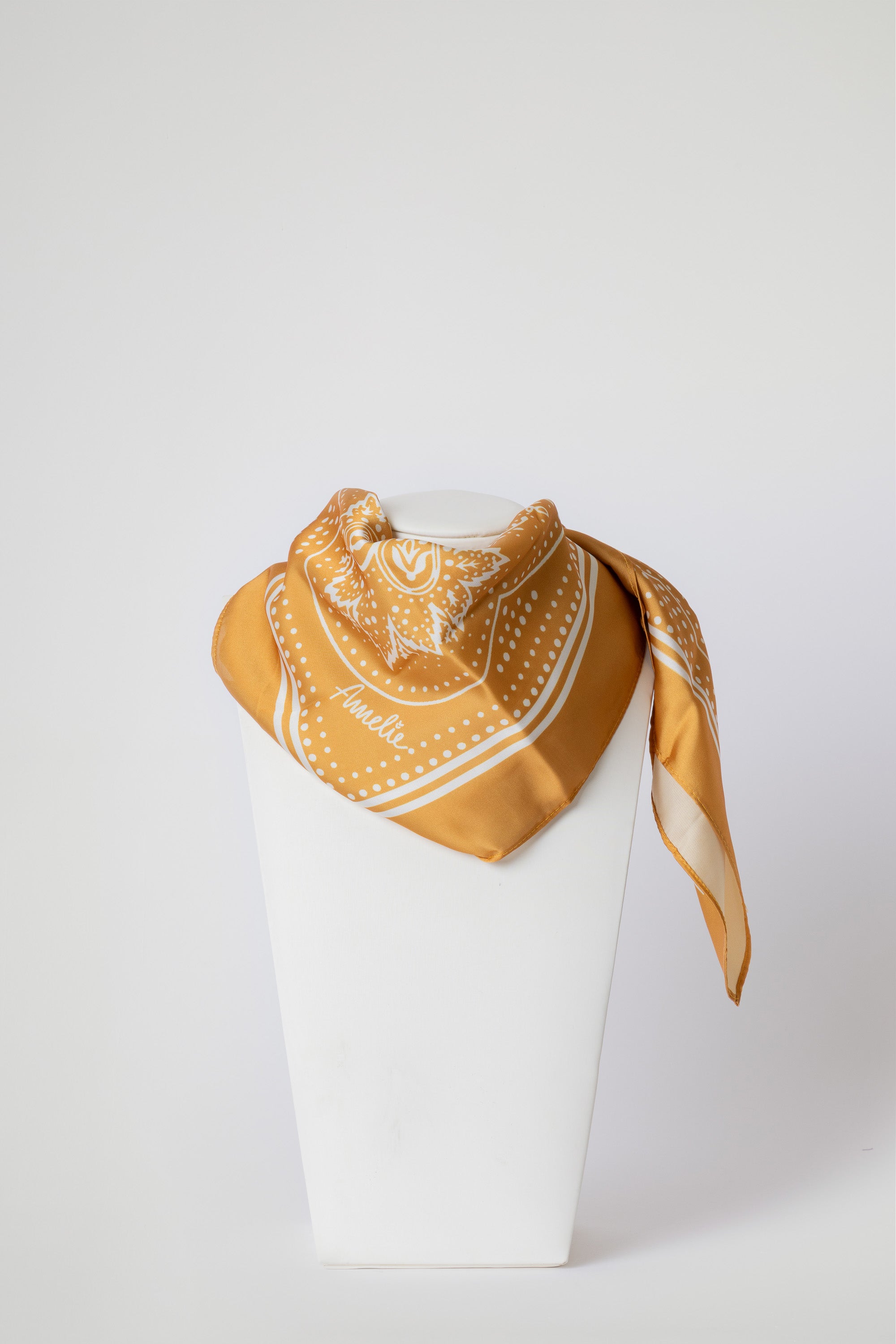 Foulard in morbida seta, impreziosito da raffinate stampe. Leggero, luminoso e piacevole al tatto, dona un tocco di eleganza e colore ad ogni look.