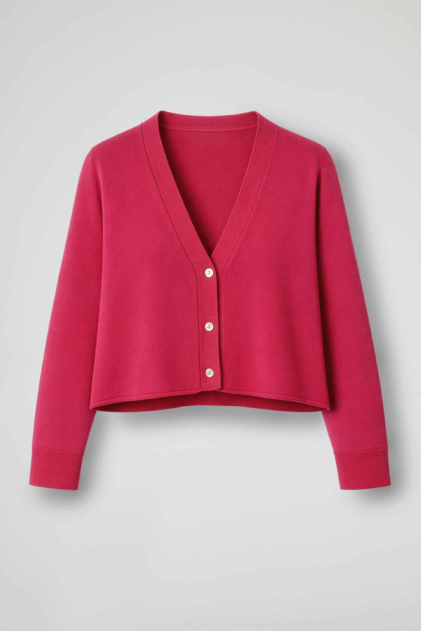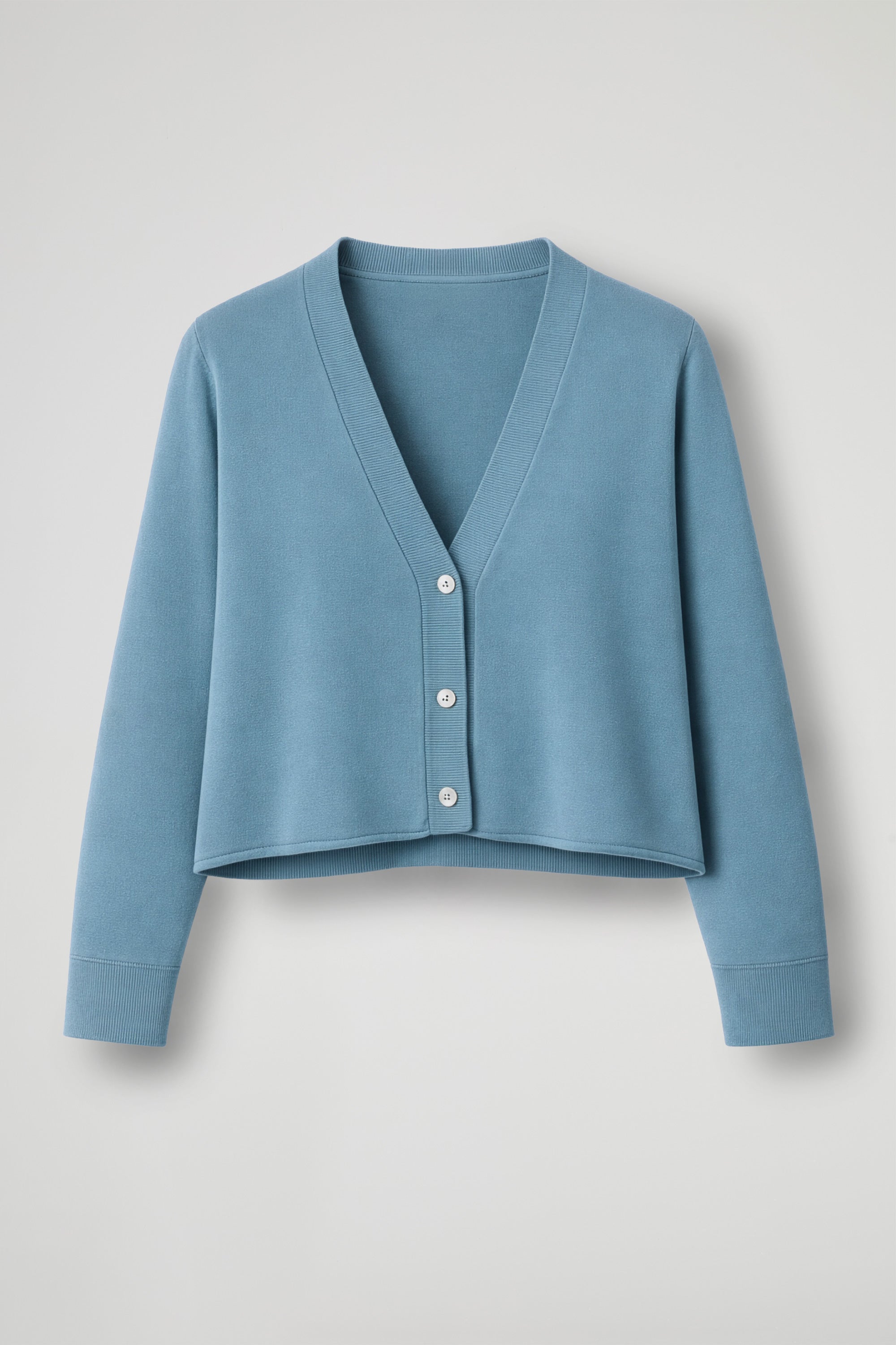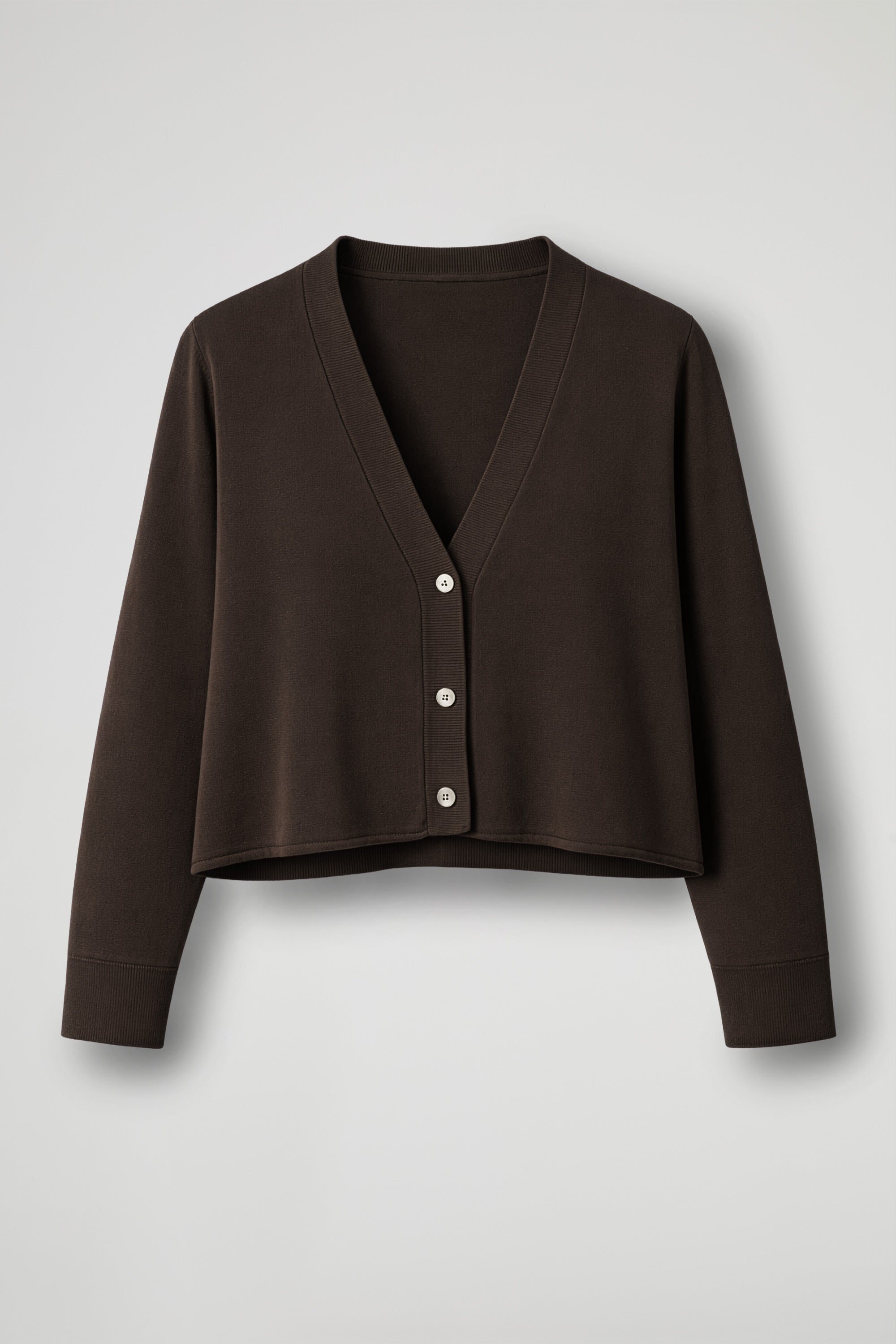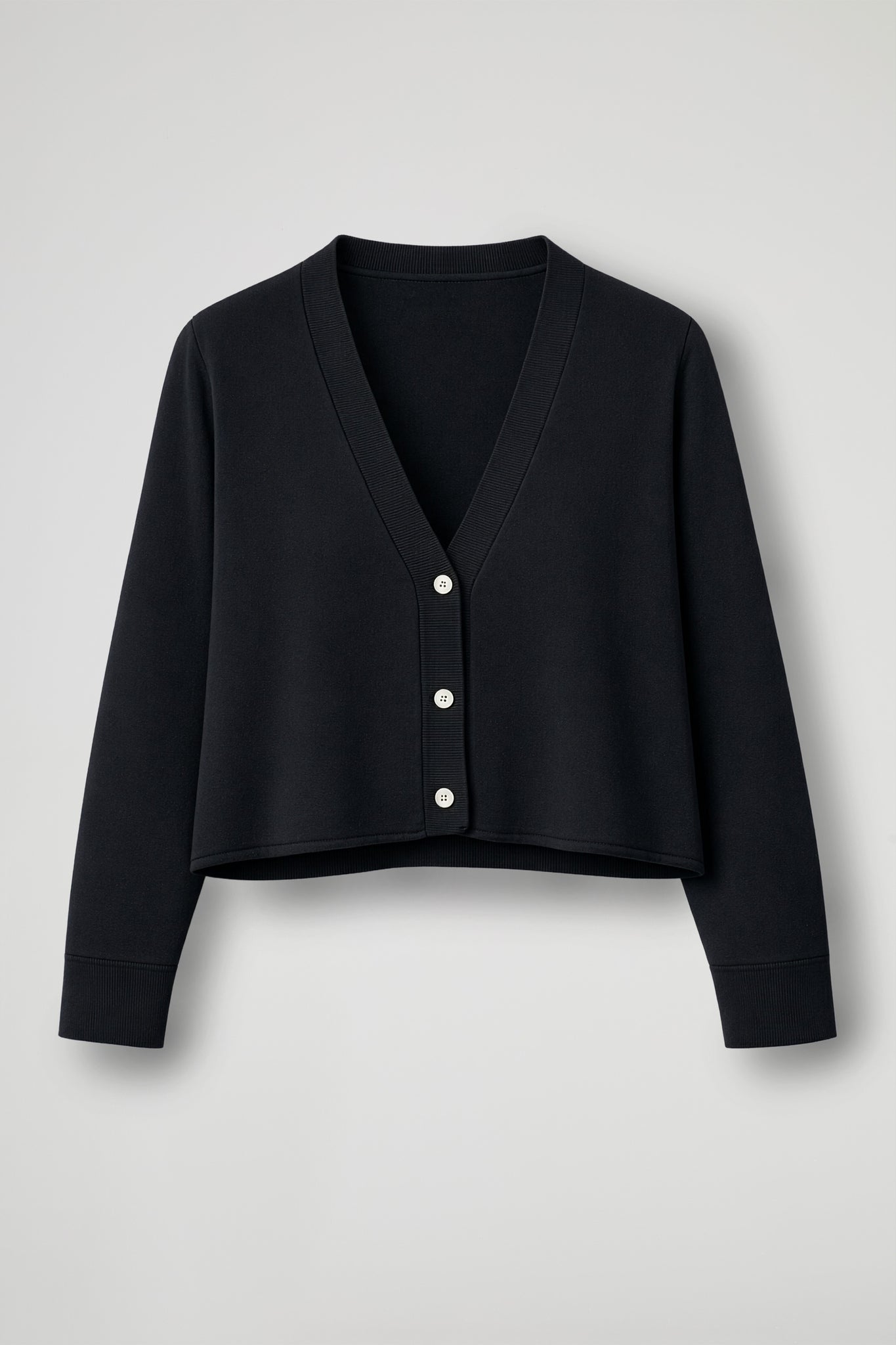 Cardigan in viscose jersey; the boxy line enhances the waist and slims the figure, while the V-neck gives a feminine and versatile allure, perfect to wear both closed as a sweater and open as a light shrug.