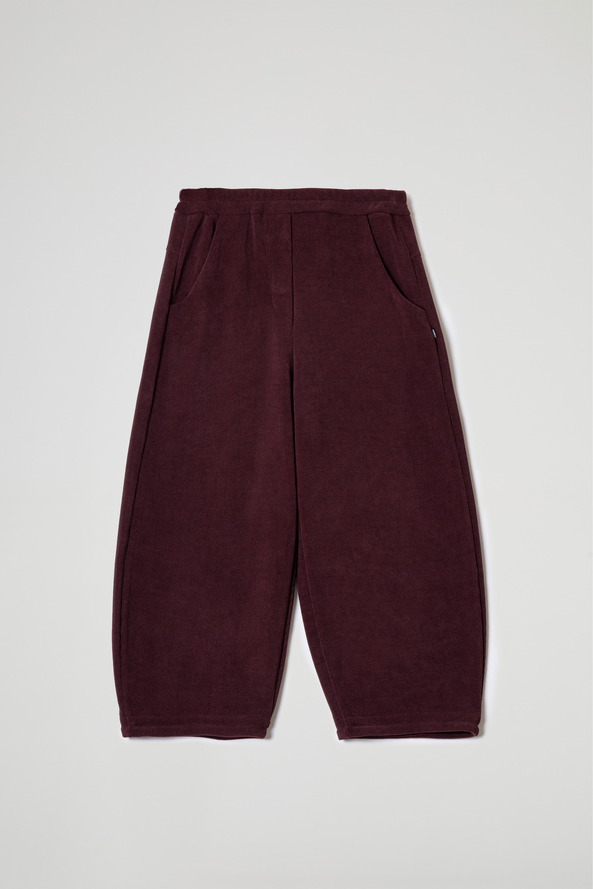 Pantalone baggy in tessuto millerighe di velluto, un materiale caldo, avvolgente e con mano morbida, che conserva elasticità e struttura. Perfetto per look rilassati e quotidiani, ma anche per outfit più ricercati grazie alla texture raffinata e al design essenziale.