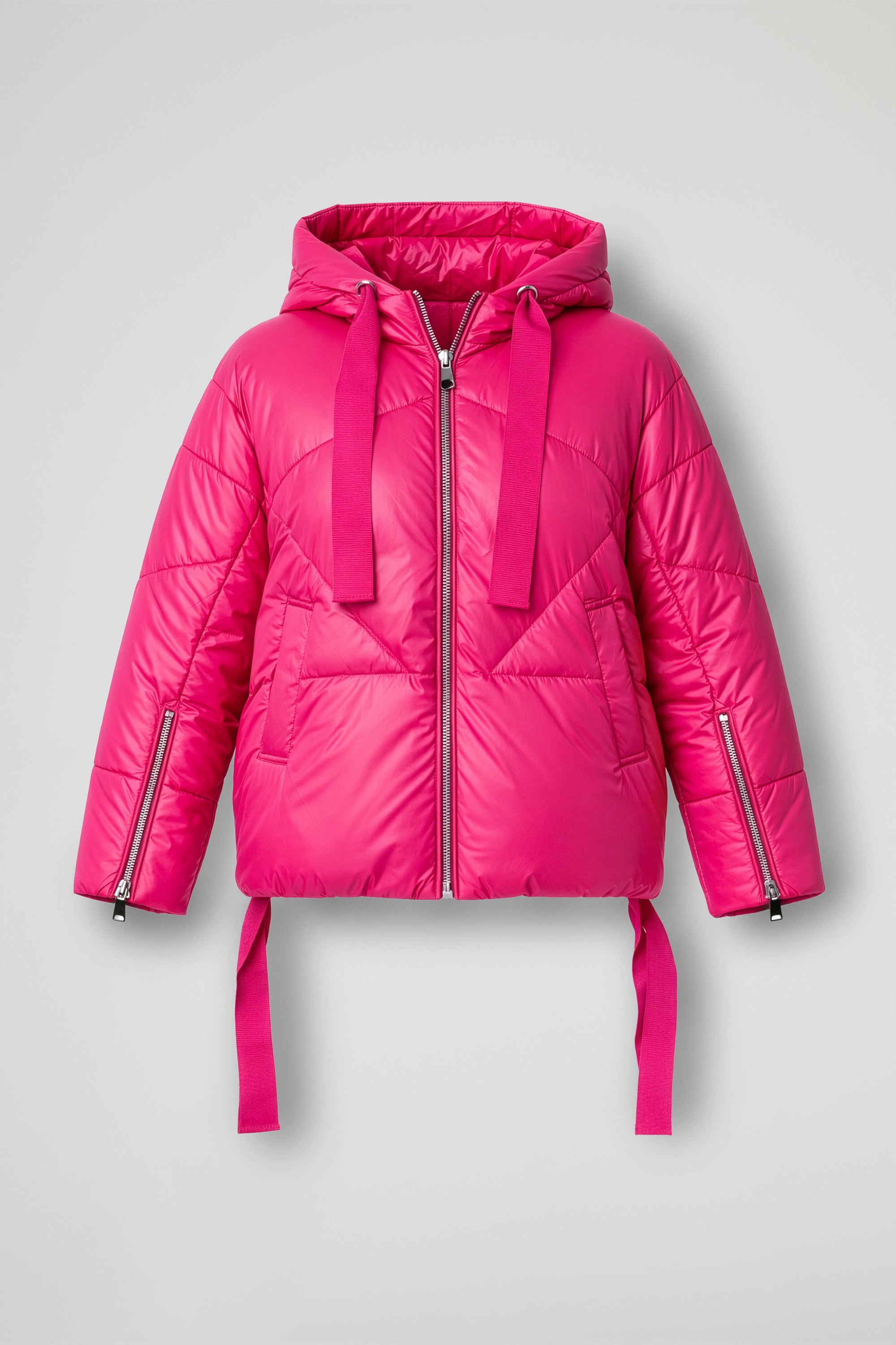 Piumino corto dal finish lucido, perfetto per aggiungere un tocco deciso al proprio look; Vestibilità confortevole, ideale da indossare ogni giorno, dotato di cappuccio avvolgente, chiusura frontale con zip e comode tasche laterali. Le zip ai polsi e i lacci extra-long completano il design con un dettaglio contemporaneo.