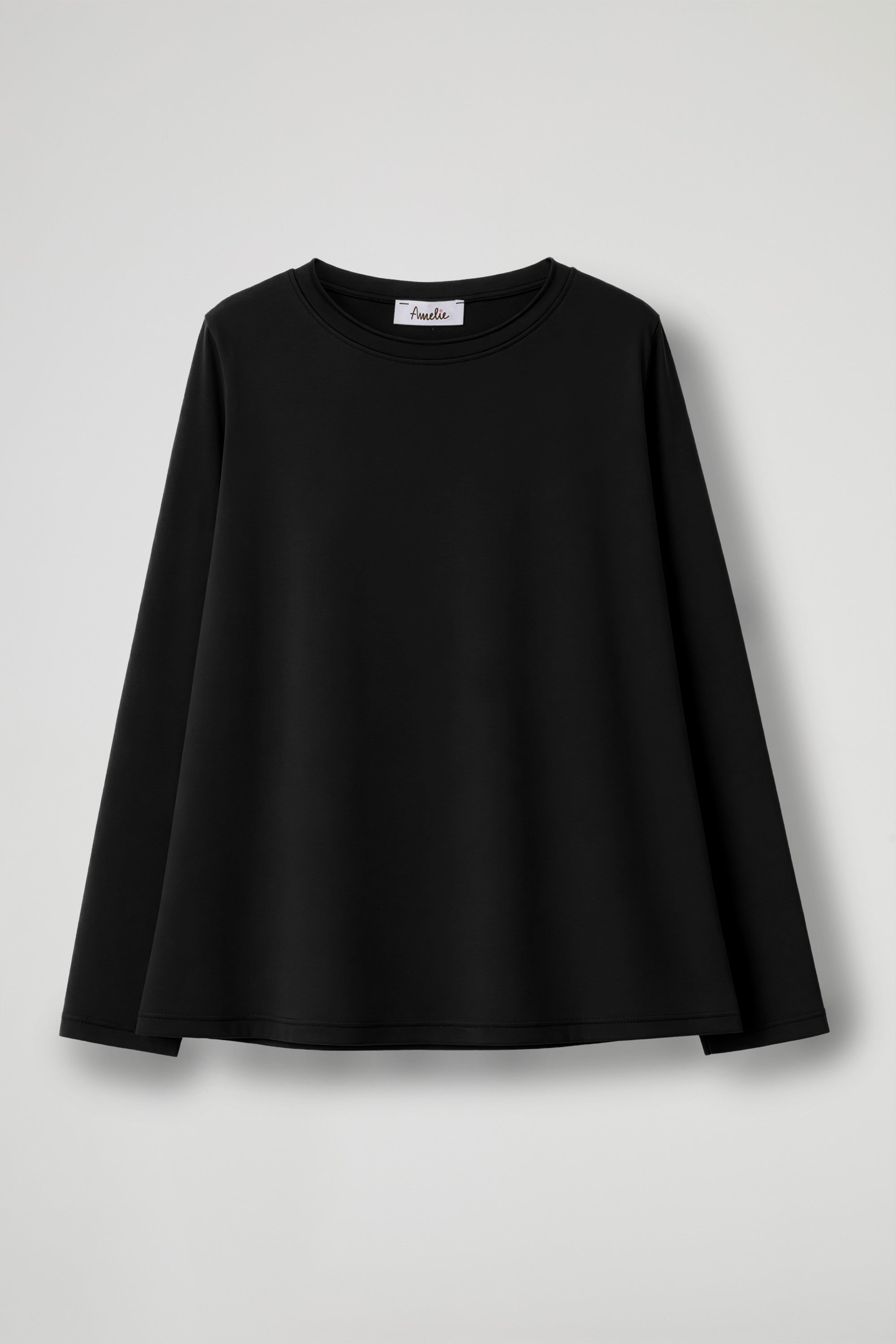 A long-sleeved sweater with a minimal, contemporary appeal, a versatile piece made from soft cotton fabric that hugs the figure with a comfortable fit that flatters without constricting; the essential design is enhanced by the finished round neckline and soft lines that make it extremely versatile.