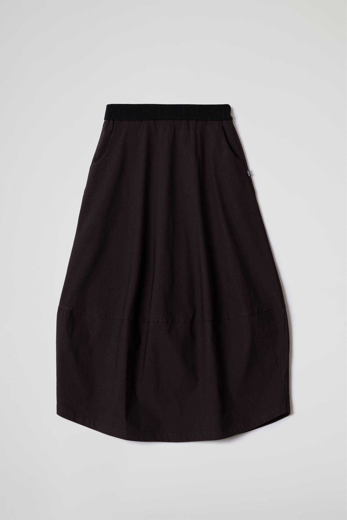 Gonna midi dalla linea leggermente stondata, modello semplice e versatile, adatto sia a look casual che a outfit più formali.