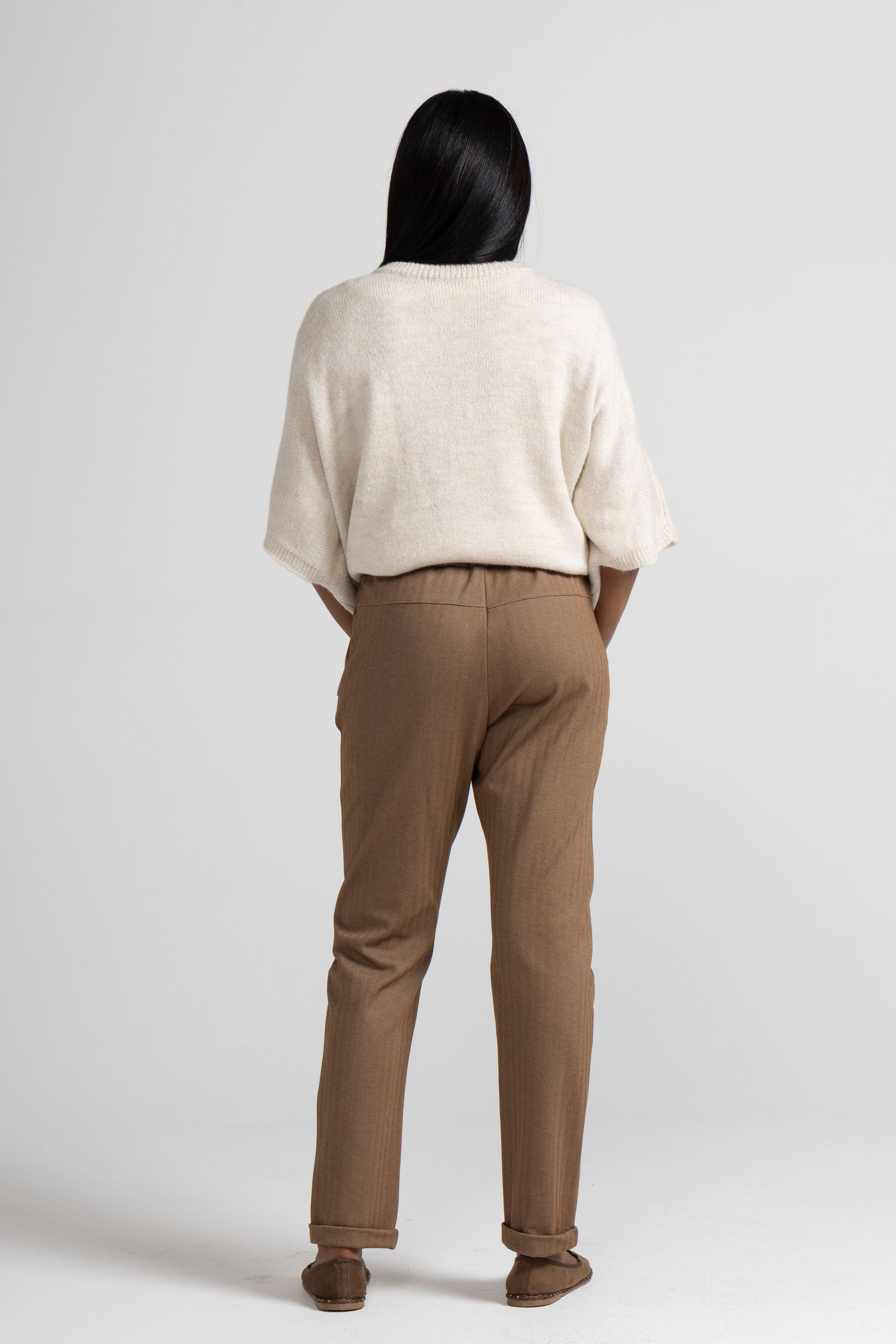 PANTALONE REGULAR IN TESSUTO PUNTO MILANO DI VISCOSA CON TRAMATURA PUNTO RESCA,TASCHE ALLA FRANCESE, RISVOLTO SUL FONDO, ELASTICO IN VITA. LINEA COMFORT