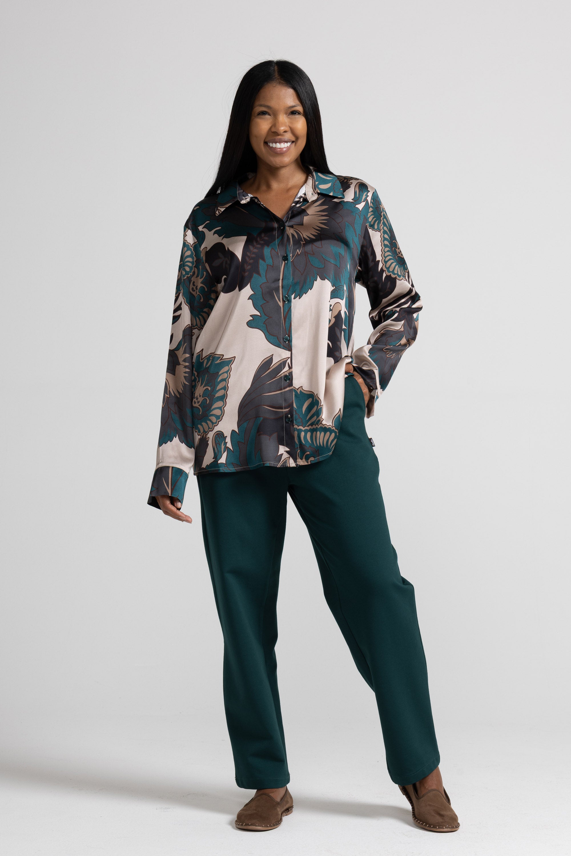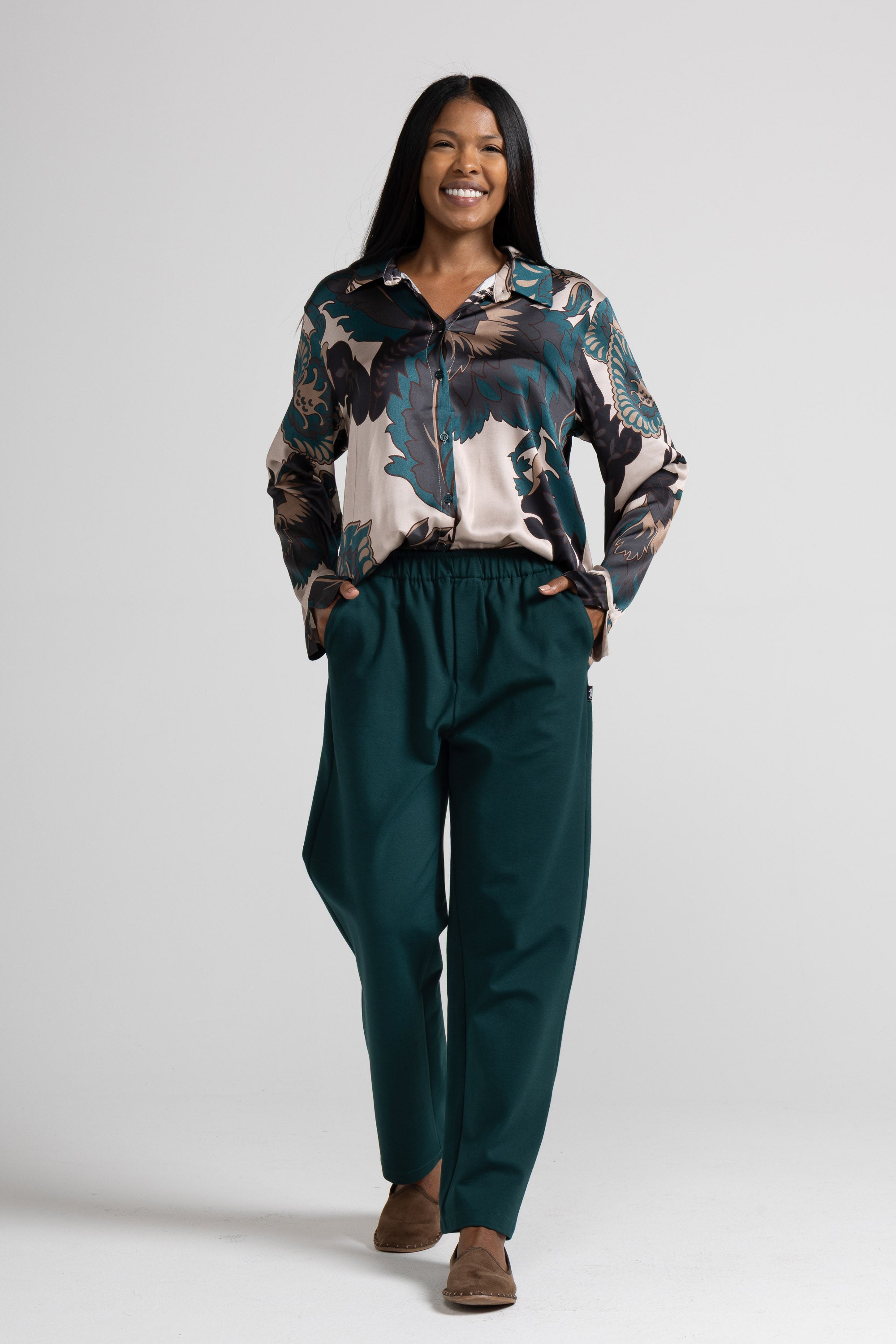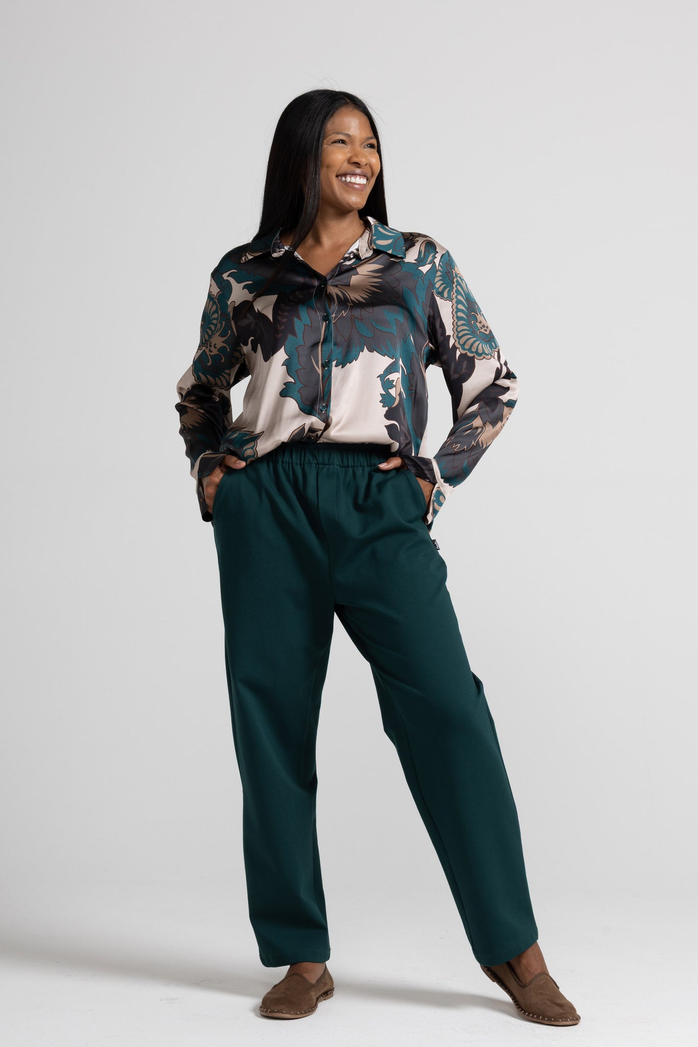 PANTALONE IN PUNTO MILANO DI VISCOSA, GAMBA REGULAR, ELASTICO IN VITA, TASCHE ALLA FRANCESE, FINTA PATTA SUL DAVANTI. LINEA CONFORTEVOLE.