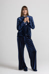 Pantalone a palazzo in velluto elasticizzato morbido e piacevole al tatto, elastico in vita per un comfort ottimale, tasche all' americana. Lina morbida