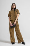 La linea ampia e scivolata dona armonia alla figura e accompagna i movimenti con grazia, mentre la vita elasticizzata assicura massimo comfort e una vestibilità versatile.